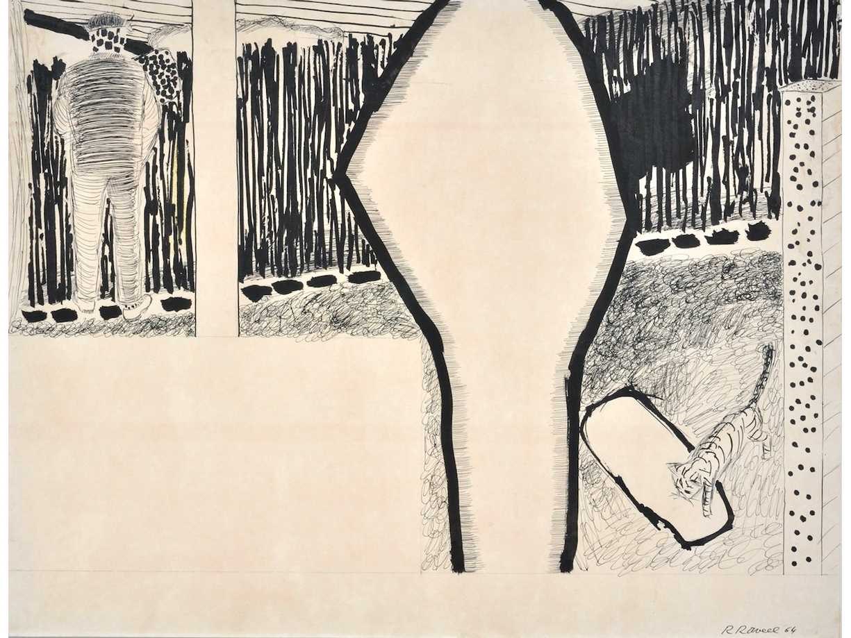 Origineel topwerk - professioneel ingelijst met museumglas - Het werk vertoont duidelijke compositorische en thematische overeenkomsten met De wandeling van Roger Raveel (collectie KMSKA) en is waarschijnlijk een voorstudie hiervoor - met certificaat - Galerieprijs: 16.000 € Nee Kunstenaar: Roger Raveel Titel van werk: De wandeling Datering: 1964 Techniek: Oost-Indische inkt en potlood op papier Handtekening/oplage: true Gesigneerd: Gesigneerd en gedateerd Hoogte: 55cm Breedte: 72cm Hoogte incl. lijst: 80cm Breedte incl. lijst: 97cm Frame: true
