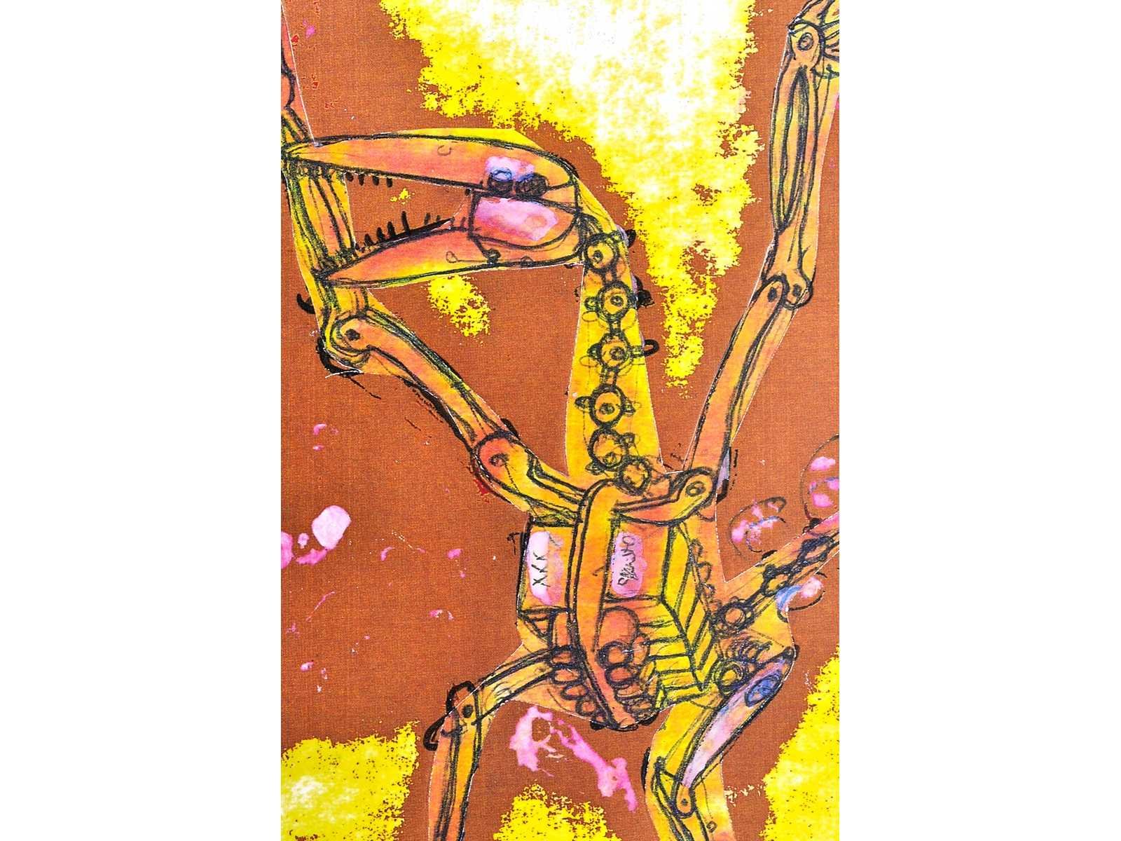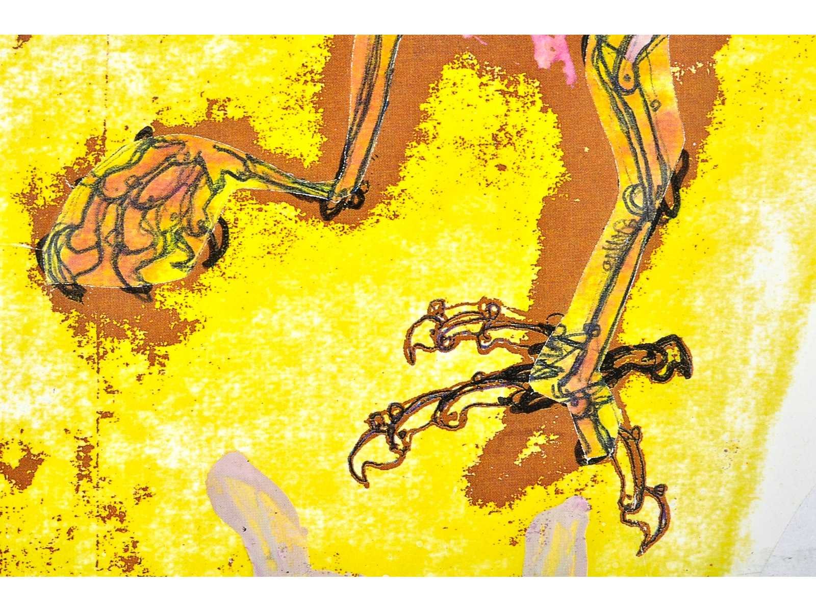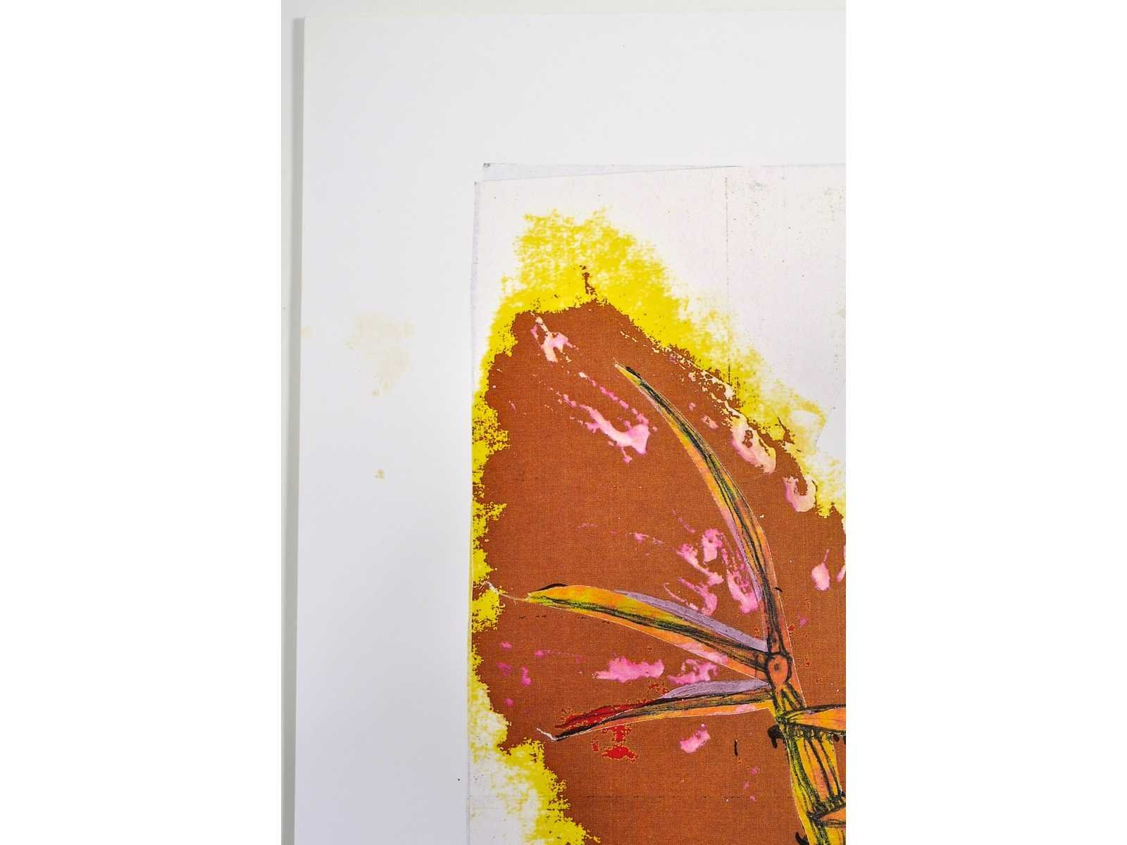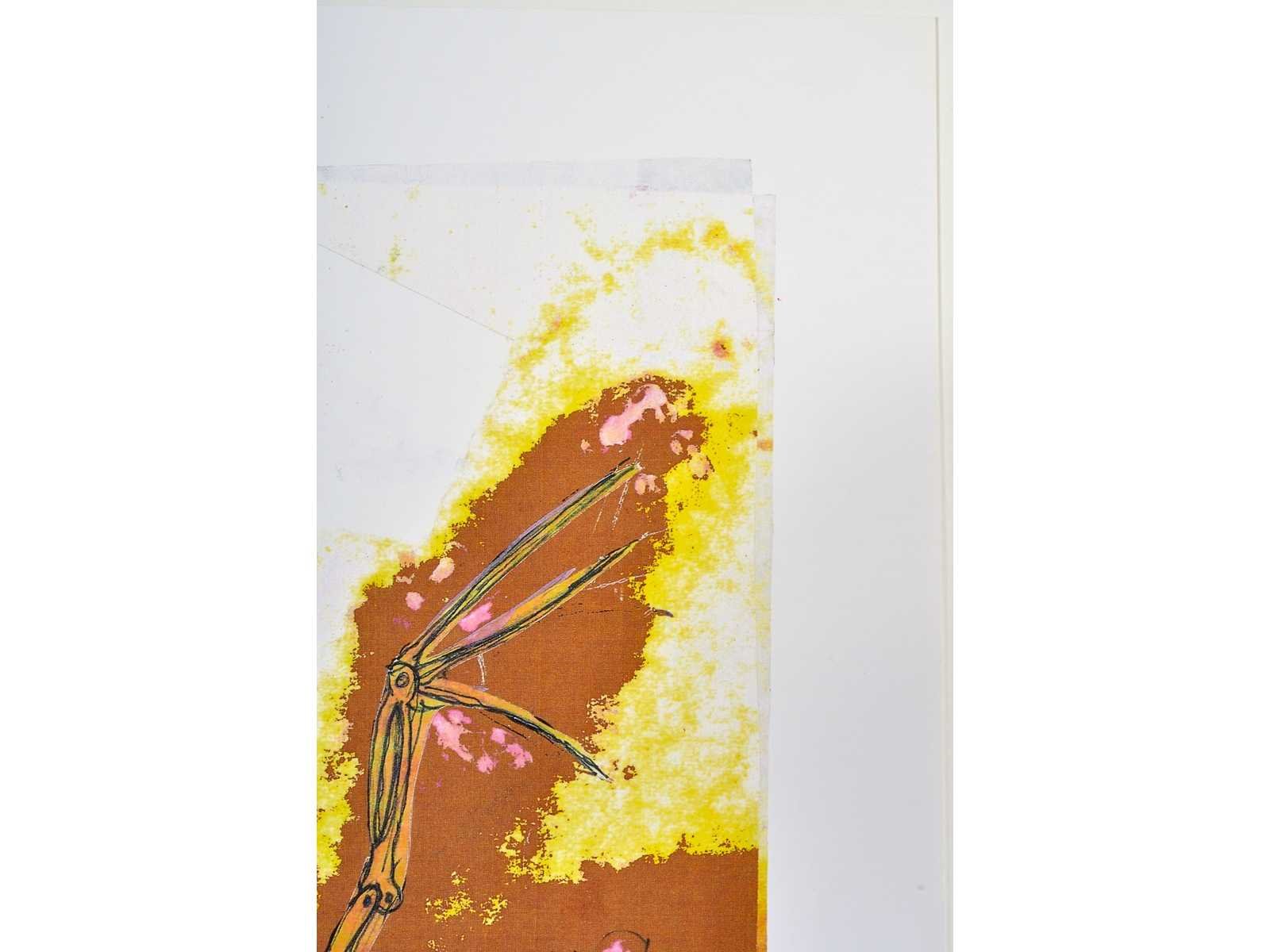 Originele zeefdruk van Panamarenko - licht bevlekt in de witte marge links boven (volledig weg te werken met passe-partout) - Bijgevoegd: de originele map van de uitgave (bevlekt) - galerieprijs: 3.000 € Nee Kunstenaar: Panamarenko (Antwerpen 1940-2019) Titel van werk: De kip Periode: 1990 Techniek: zeefdruk Handtekening/oplage: true Oplage: AP XI/XX Gesigneerd: gesigneerd, genummerd en gedateerd Hoogte: 54cm Breedte: 38cm