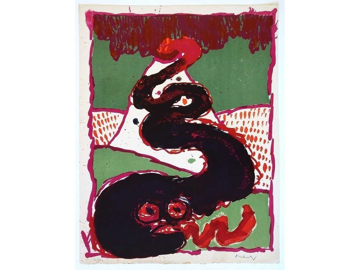 Exclusieve kleurenlithografie. Galerieprijs 1900 euro. Nee Kunstenaar: Pierre Alechinsky (Brussel, 1927) Titel van werk: Vulcanologies Techniek: kleurenlithografie Handtekening/oplage: true Oplage: 90 exemplaren Gesigneerd: Gesigneerd en genummerd Hoogte: 57cm Breedte: 43cm Frame: false