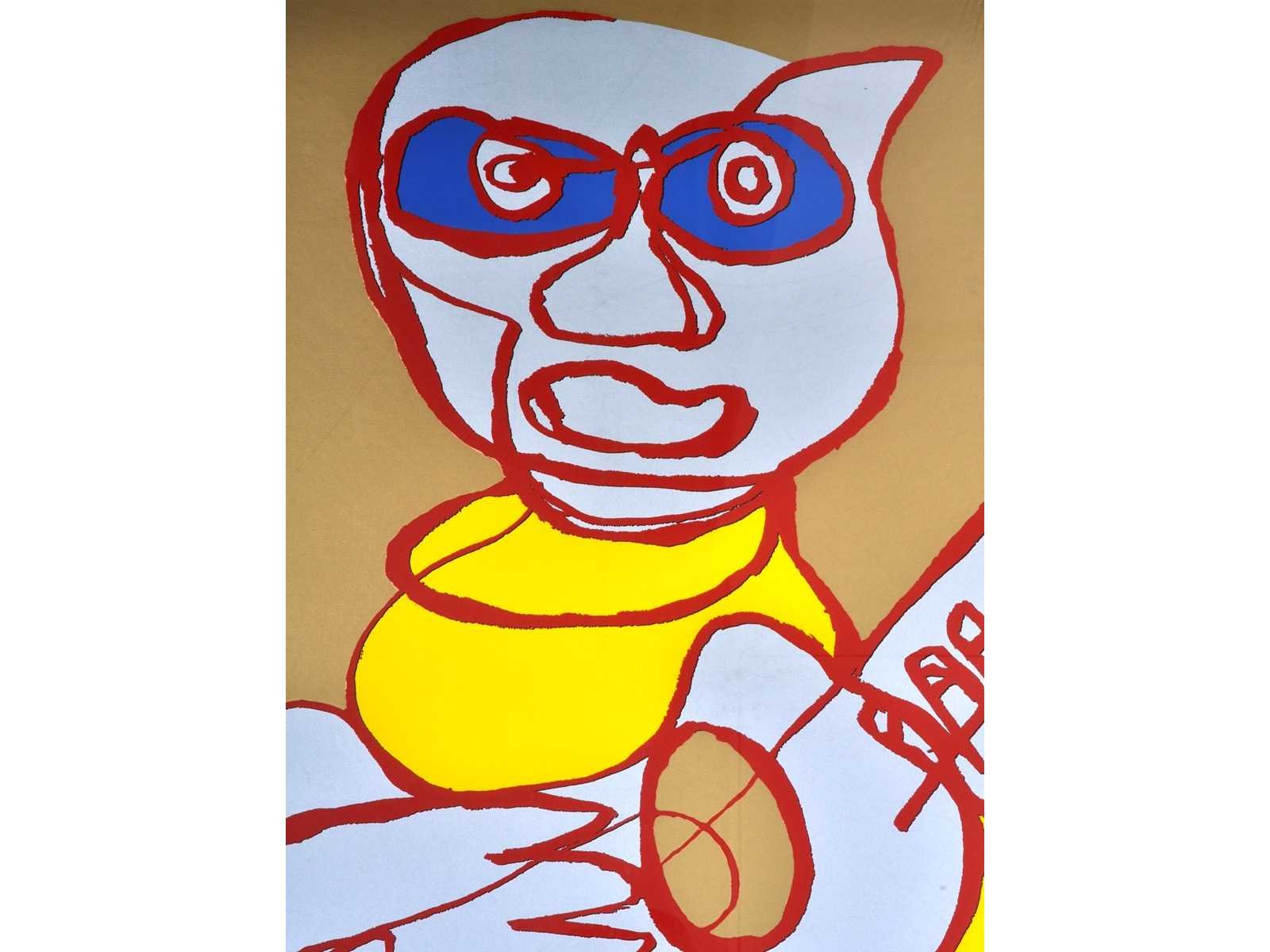Grote zeefdruk van Appel - Galerieprijs: 3.500 € Nee Kunstenaar: Karel Appel (Amsterdam 1921-2006) Titel van werk: Cool luke singing hands Periode: 1978 Techniek: kleurenzeefdruk Handtekening/oplage: true Oplage: A.P. (Artist Proof) Gesigneerd: gesigneerd en geanoteerd Hoogte: 96cm Breedte: 66cm Frame: true