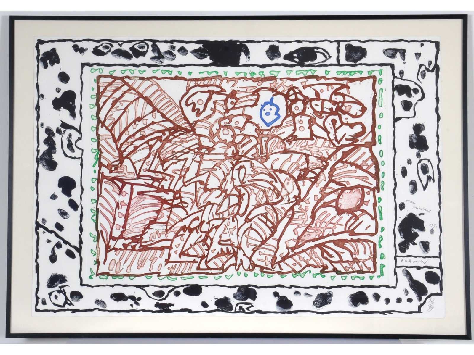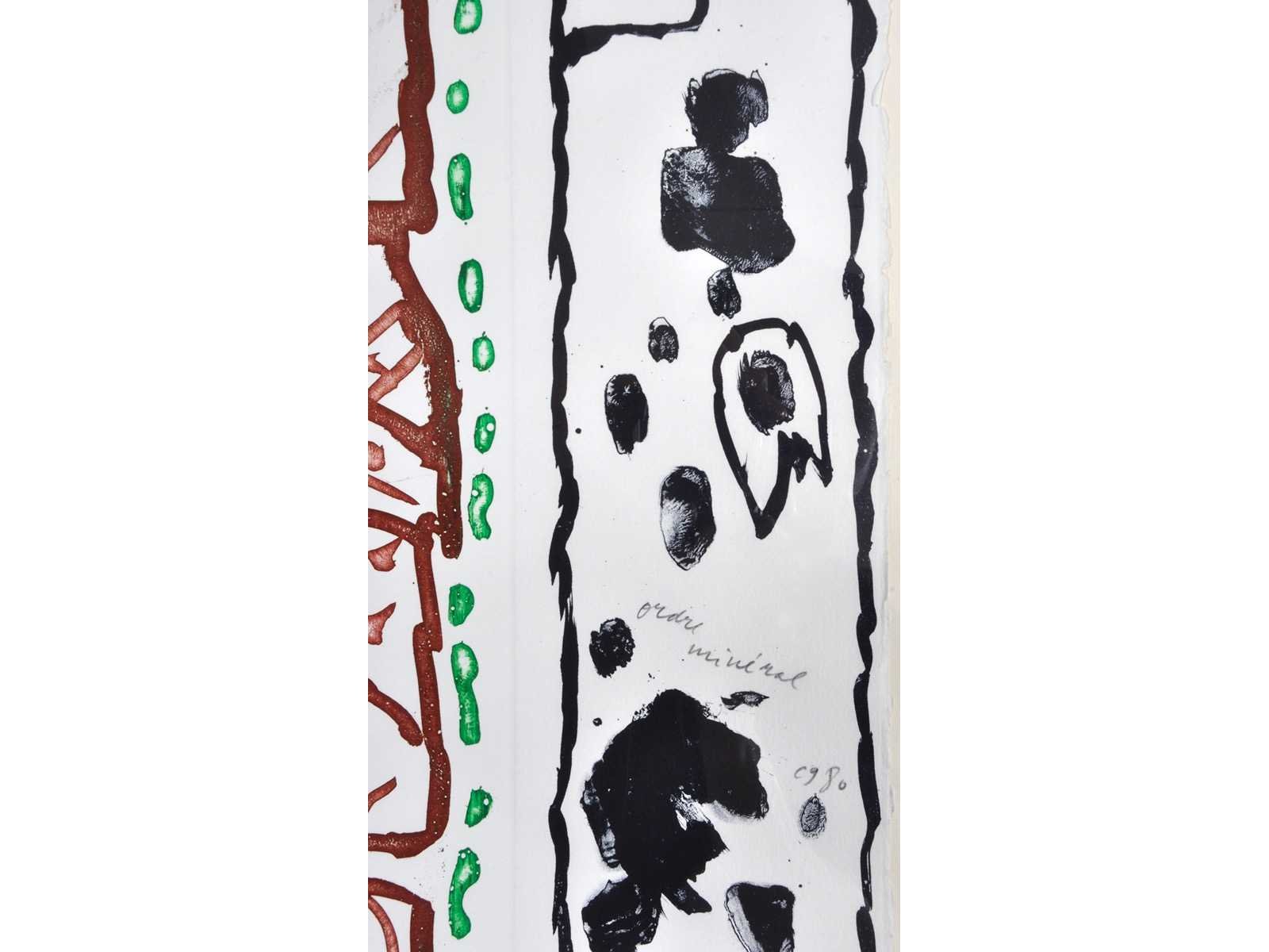Nee Kunstenaar: Pierre Alechinsky (Brussel, 1927) Titel van werk: Ordre minèral Periode: 1990 Datering: 1980 Techniek: Ets en aquatint Handtekening/oplage: true Oplage: 78/99 Gesigneerd: Gesigneerd en genummerd Hoogte: 63cm Breedte: 90cm Frame: true