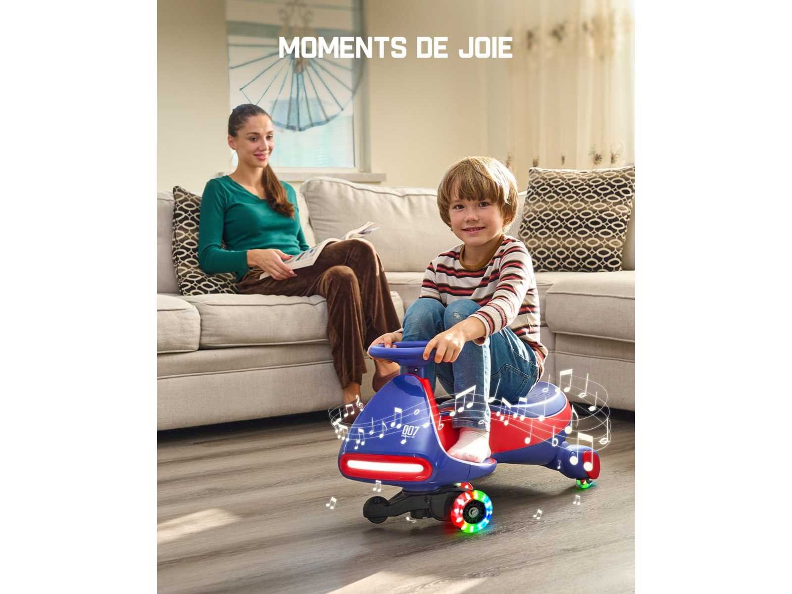 Productafmetingen: 76L x 41,5B x 34H centimeter Montage vereist: Ja 360° rol en 2-in-1 kinderauto: De elektrische kinderauto beschikt over een stuurwiel met geïntegreerde lagers en draaibare wielen die 360° kunnen besturen, waardoor je zowel binnen als buiten plezier kunt hebben. Power-modus: Zet de schakelaar aan en trap het pedaal in, of Handmatige modus: Draai aan het stuur of schuif met je voeten voor een leuke rit 2 Snelheden & Anti-Rollover: 12V accu en krachtige 45W motor, je kunt tussen twee snelheid (6 km/u en 4 km/u) schakelen via de verbindingsknop onder het voertuig. Piramide-stijl dubbel-wishbone antiroll chassis, verbeterde antiroll achterwielen en veerveringsysteem, waardoor kantelen van links naar rechts effectief worden voorkomen Knipperende wielen & Bluetooth: Wanneer je op de elektrische auto schuift, leidt het voorlicht je en knipperen de magnetische wielen met kleurrijke lampen. De heldere, batterijvrije PU-wielen zorgen voor schokabsorptie, glijden soepel en krassen de vloer niet. Maak verbinding met Bluetooth om het volume en de muziek aan te passen, wat het rijplezier van je kind toevoegt Kindvriendelijk: De elektrische auto stimuleert de verbeelding en het handvaardigheid van het kind, terwijl het hand-oogcoördinatie en een gevoel voor balans ontwikkelt. De ergonomisch ontworpen, extra brede stoel biedt plaats aan twee kinderen. Dit speeltje is geschikt voor hoogtes tot 175 cm en een maximaal gewicht van 68 kg, zodat zelfs volwassenen kunnen genieten van het plezier van de kleintjes Non