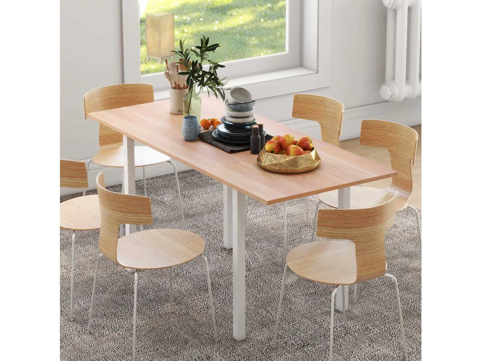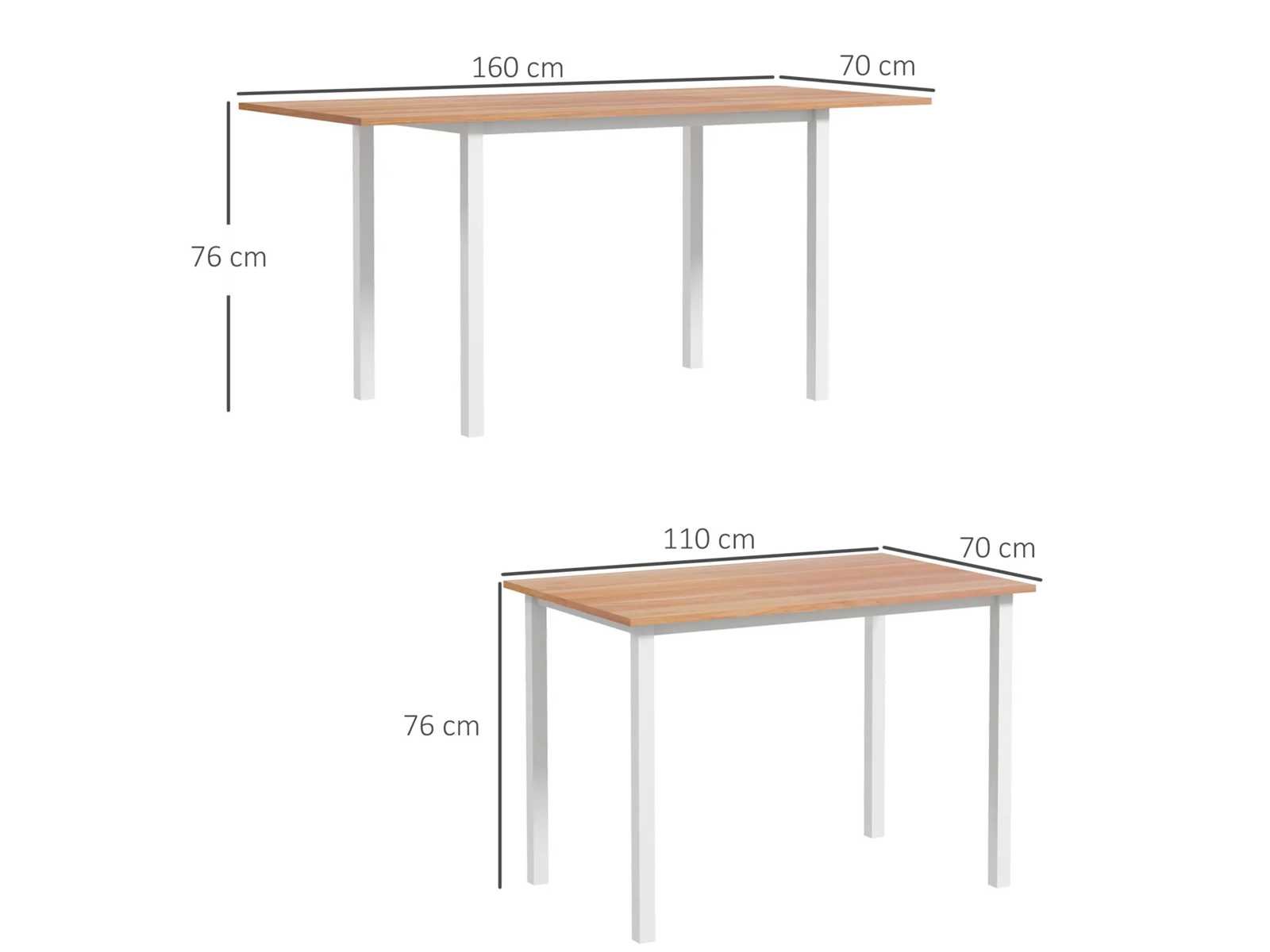 Specificaties: - Kleuren: bruin, wit - Materialen: MDF, staal - Uitbreidingsafmetingen: 160L x 70B x 76H cm - Opgevouwen afmetingen: 110L x 70W cm - Aanbevolen maximale belasting: 40 kg -Zon. Voorgestelde mini-ruimte: 7,36 m² (320 L x 230 W cm) Non