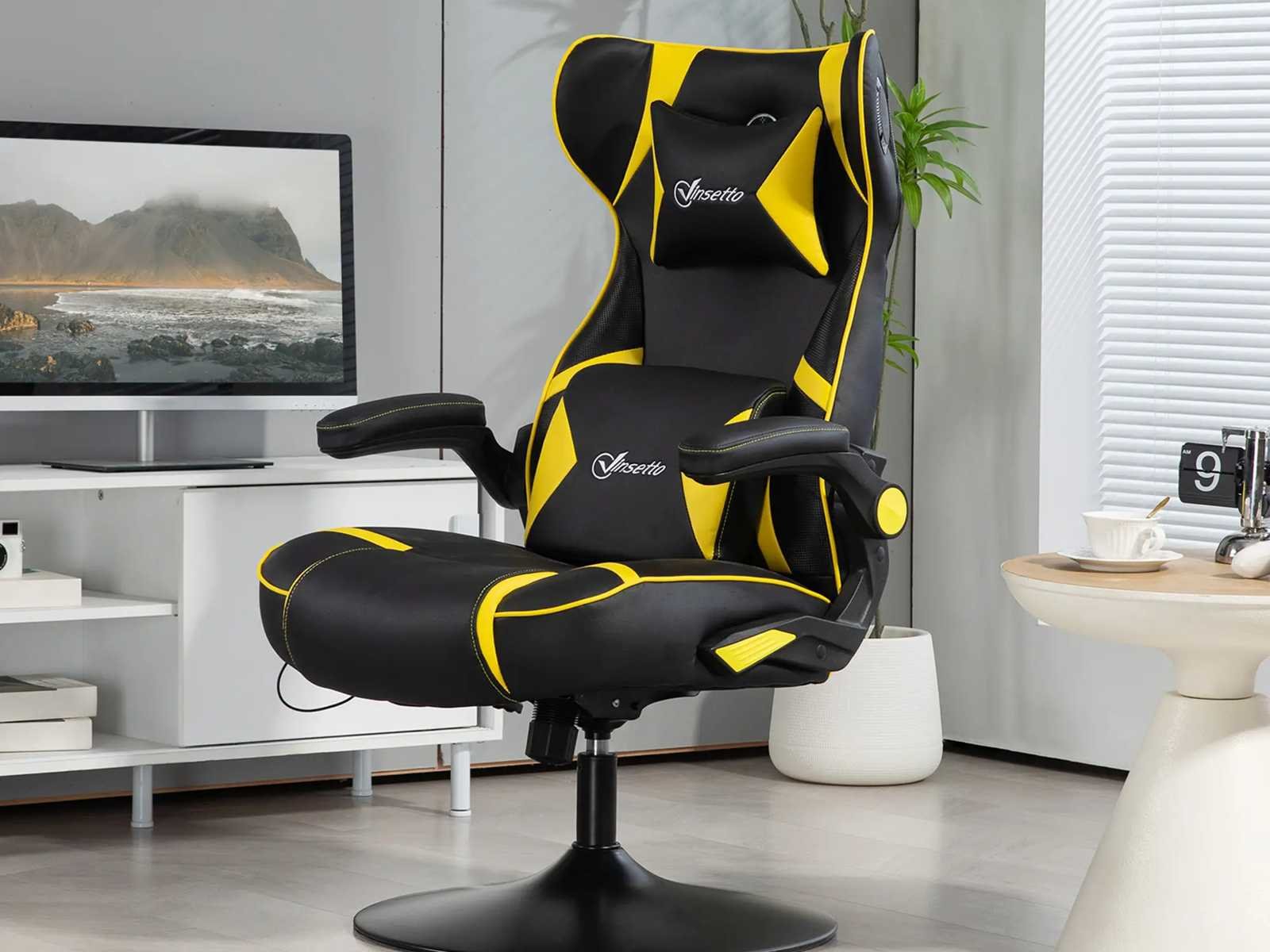 Gamingstoel met rockerfunctie en luidspreker, lenden- en neksteun