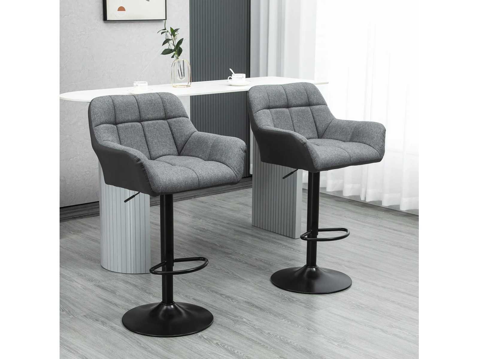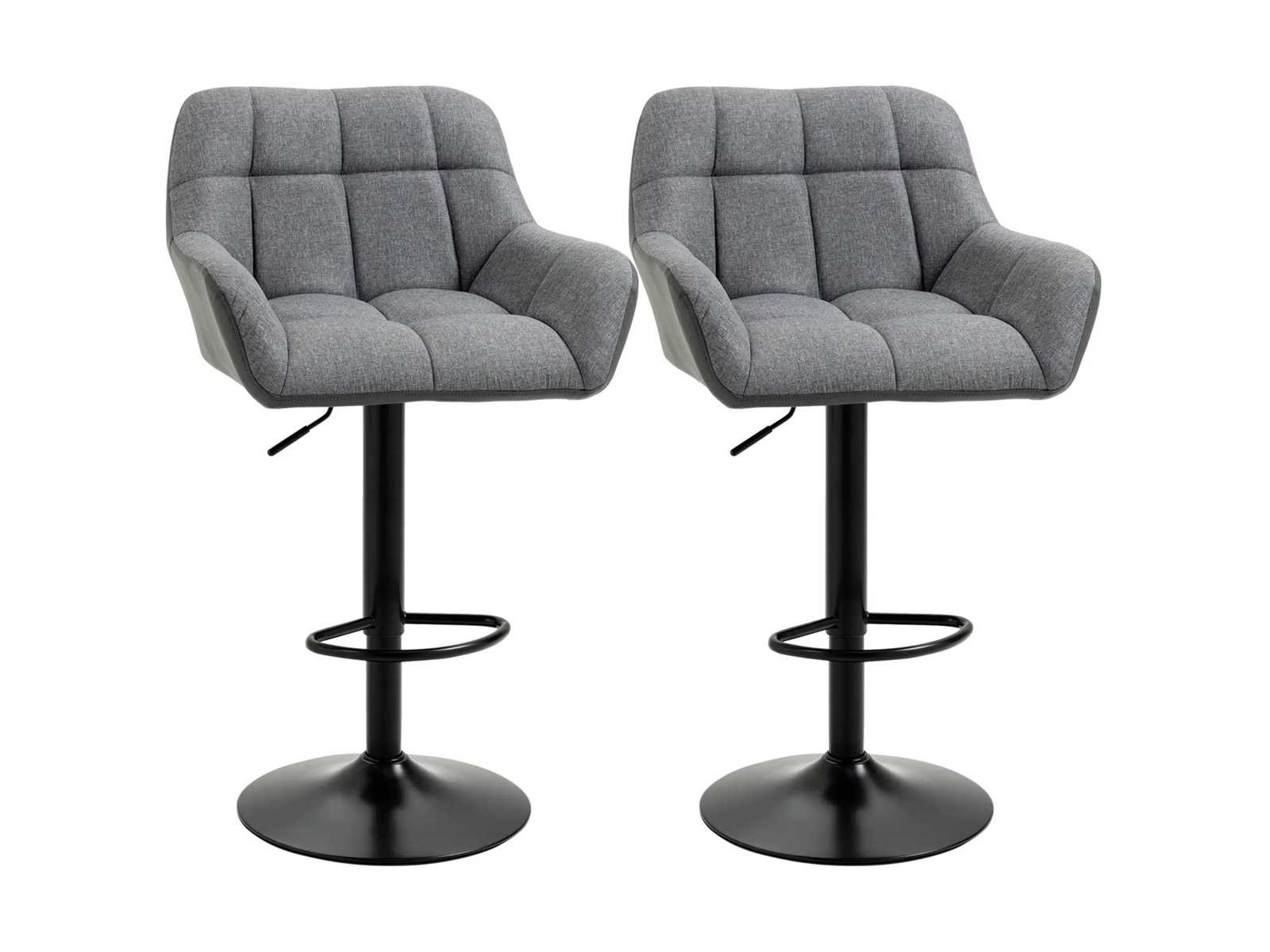 Specificaties: - Kleur: grijs+zwart - Materialen: Imitatieleer (60% polyurethaan, 40% basis), linnen stijl stof (100% polyester), schuim, staal - Totale afmetingen: 57,5L x 52,5B x 93-114H cm - Stoelafmetingen: 37,5L x 36B x 64-85H cm - Zitdikte: 10 cm - Bodemdiameter: Ø41 cm - Draagvermogen: 120 kg Non