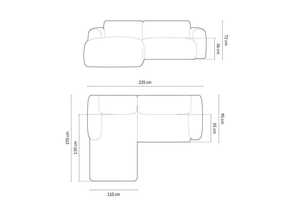 Lengte: 235 Breedte: 170 Lengte: 72 Armleuningbreedte: 28 Armleuninghoogte: 56 Zitbreedte: 97 Zithoogte: 36 Zitdiepte: 55 Rugsteunhoogte: 37 Gewicht: 98,464 Maximaal toegestaan gewicht: 400 Maximaal toegestaan gewicht: 400 Zitkussens: Polyurethaanschuim 28 kg/m³ + Vulling 300g/m² Bronnen: 1 Rugkussens: Polyurethaanschuim 23 kg/m³ + Wattering 100g/m² Benen: Zwart plastic Non