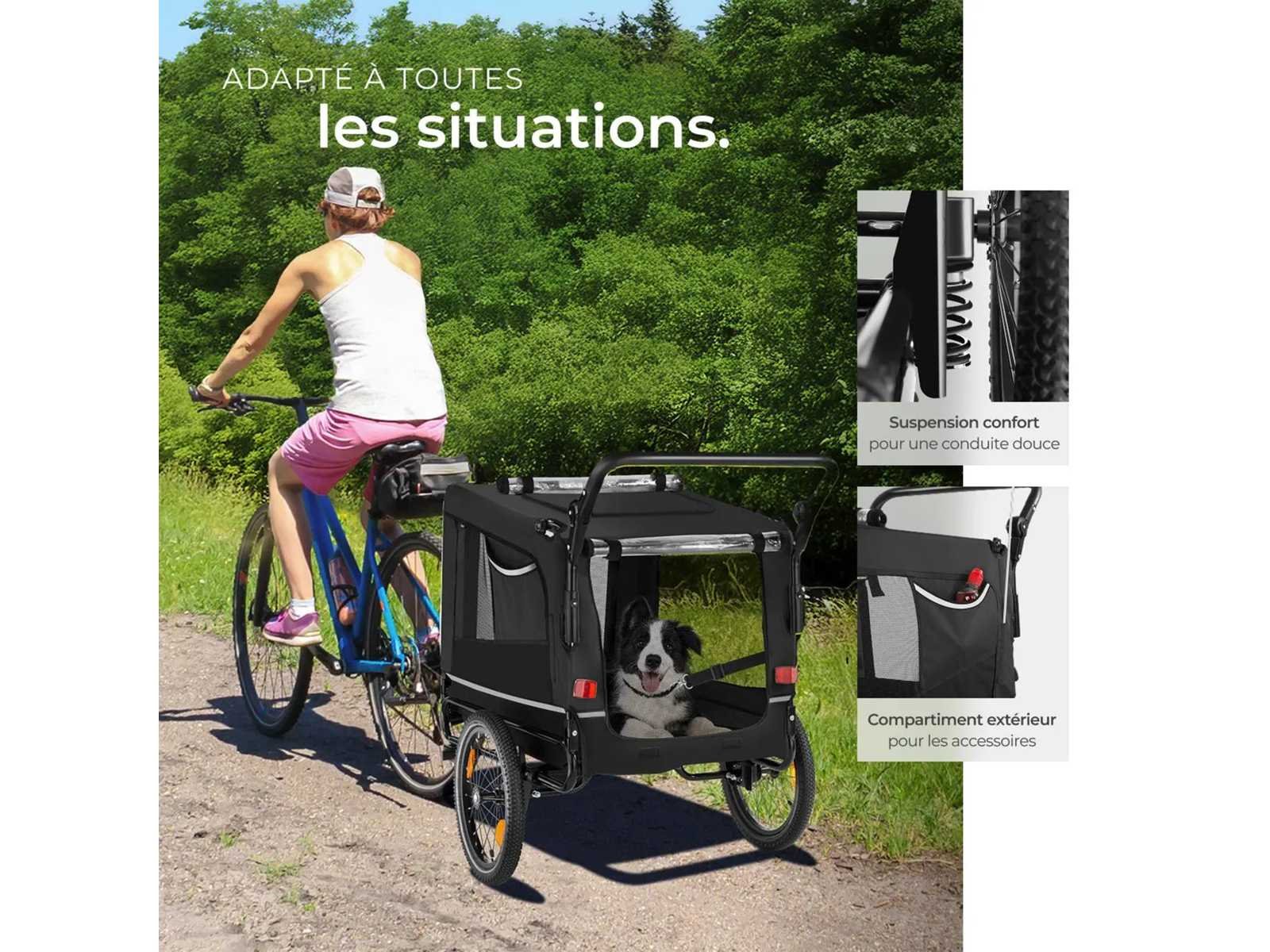 Totale afmetingen van de fietsaanhanger (WxDxH): ca. 141 x 78,5 x 89 cm Totale afmetingen van de kinderwagen (BxDxH): ca. 124 x 78,5 x 103 cm Opgevouwen afmetingen zonder wielen (BxDxH): ca. 74,5 x 83 x 24,5 cm Hoogte met waarschuwingsvlag: ca. 146 cm Handvat (B x Ø): ca. 56 x 3,1 cm Vooropening (breedtebreed): ca. 41 x 50 cm Opening aan de achterkant (BxH): ca. 43 x 40 cm Buitenste zak (B x H): ongeveer 23 x 16 cm Trekstanglengte: ca. 60 cm Achterbandmaat: 16 inch Voorbandmaat: 10 inch Fietstrailer trekhaak: 10 mm Volume: 240 liter Ondersteund gewicht: 40 kg Gewicht: ca. 13,6 kg Materialen: geschilderd staal, nylon, rubber, polyvinylchloride, 100% polyester Non