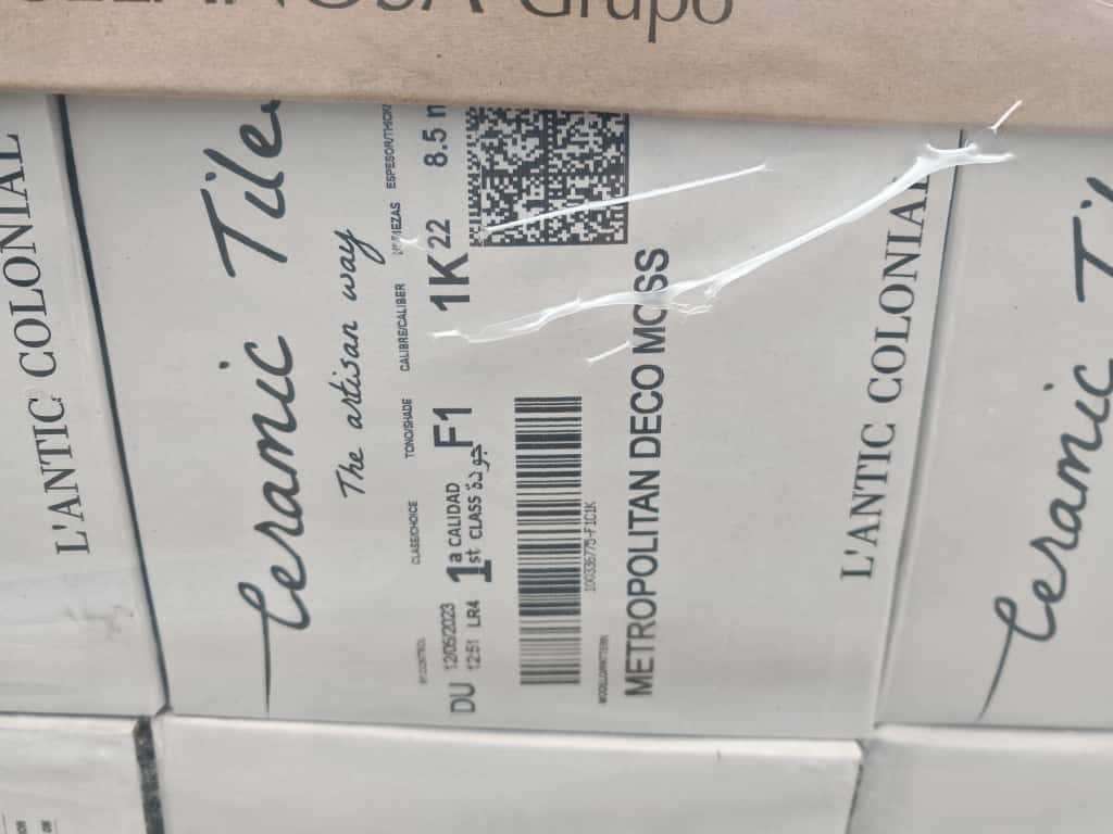 No Merk: L'antic Colonial Kleur: Moss Afwerking: Glans Lengte: 20cm Breedte: 20cm Materiaal: Keramiek Dikte: 8.5mm Type: Wandtegel Model: Metropolitan Deco Moss 10036775 Gewicht: 600kg Aantal m² per verpakking: 480m² Aantal pakken: 27