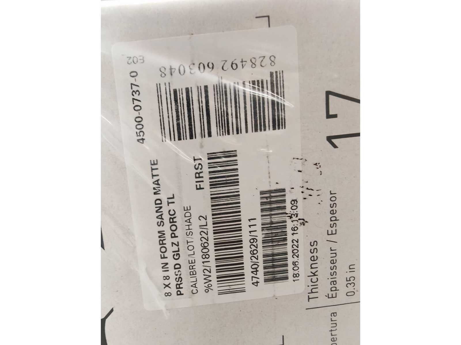 Nee Merk: Anatolia Kleur: Sand Afwerking: Mat Lengte: 200mm Breedte: 200mm Dikte: 9mm Materiaal: Keramiek Type: Vloertegel Model: Form Aantal m² per verpakking: 1m² Aantal pakken: 13 Totaal oppervlakte: 13.04m² Totaal gewicht: 260kg