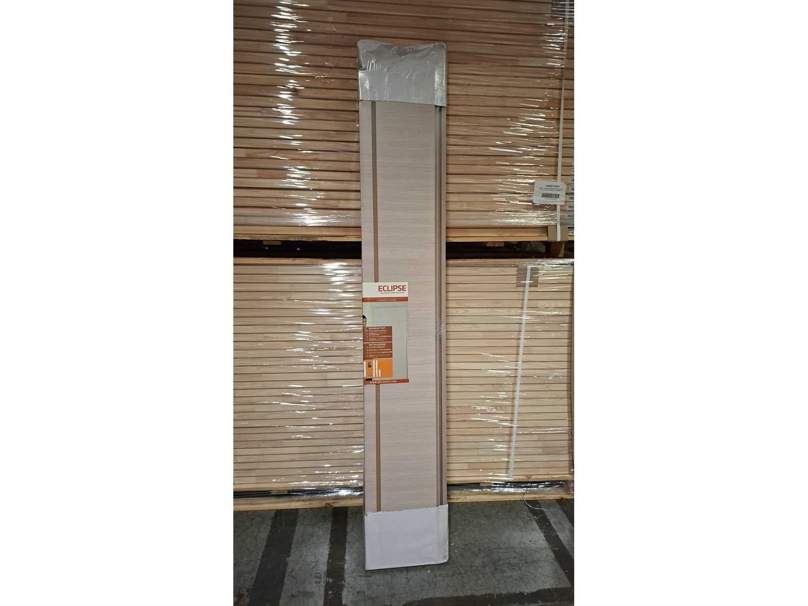 Afgewerkte deur en kozijn met witte eik motief. Strakke look door de verborgen scharnieren. Eenvoudig te plaatsen en makkelijk in onderhoud. Voorzien van magneetslot en 3D-scharnieren. Dit zijn omkeerbare deuren. Dit lot omvat: 6 X deur 730 X 2015 MM 6 X kozijn MDF 300 MM No Binnendeur: YES Hout: YES