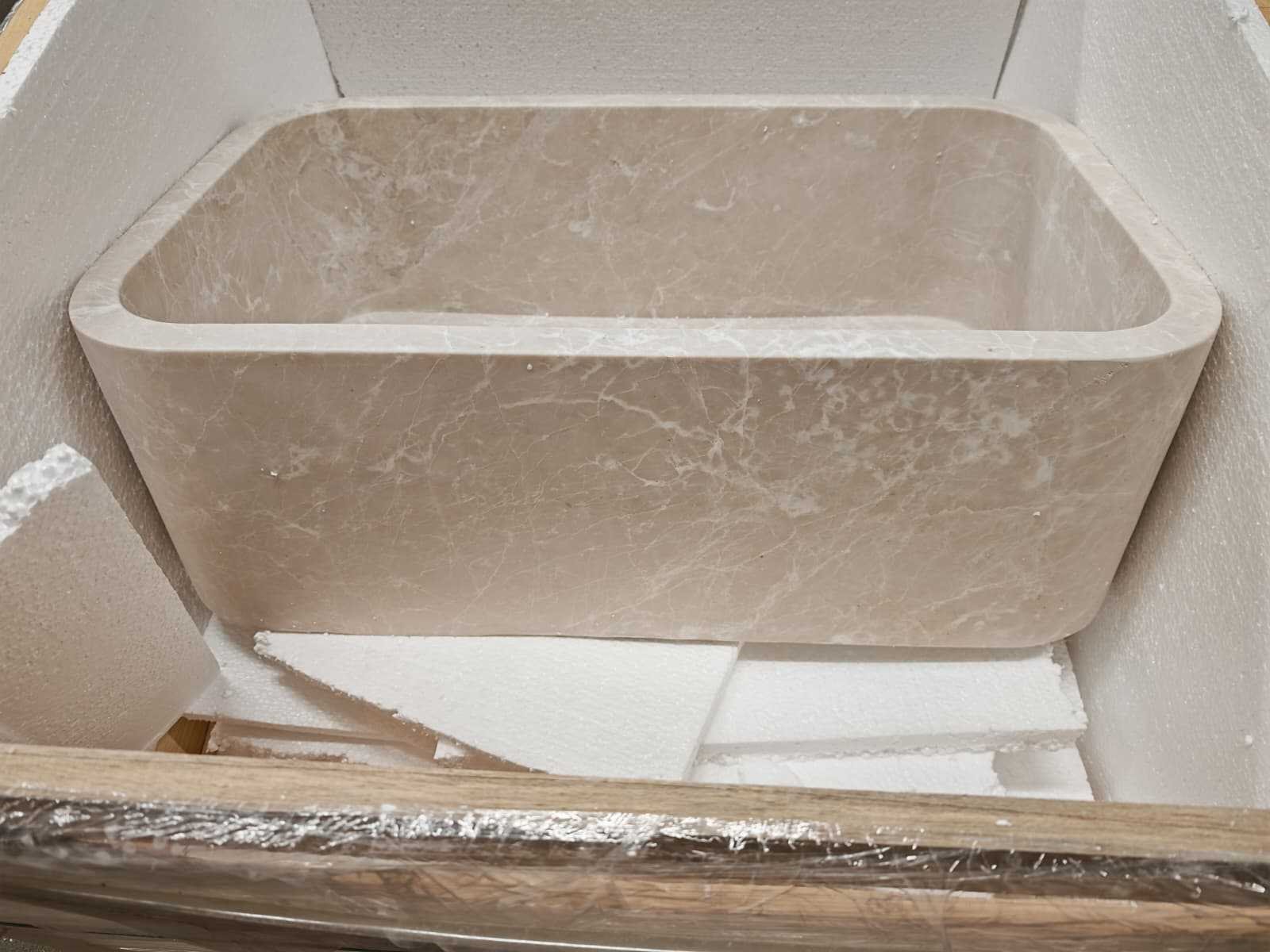 No Merk: Natuursteen Product type: Wastafel Kleur: Beige Lengte: 46cm Breedte: 76cm Hoogte: 26cm Materiaal: Marmer