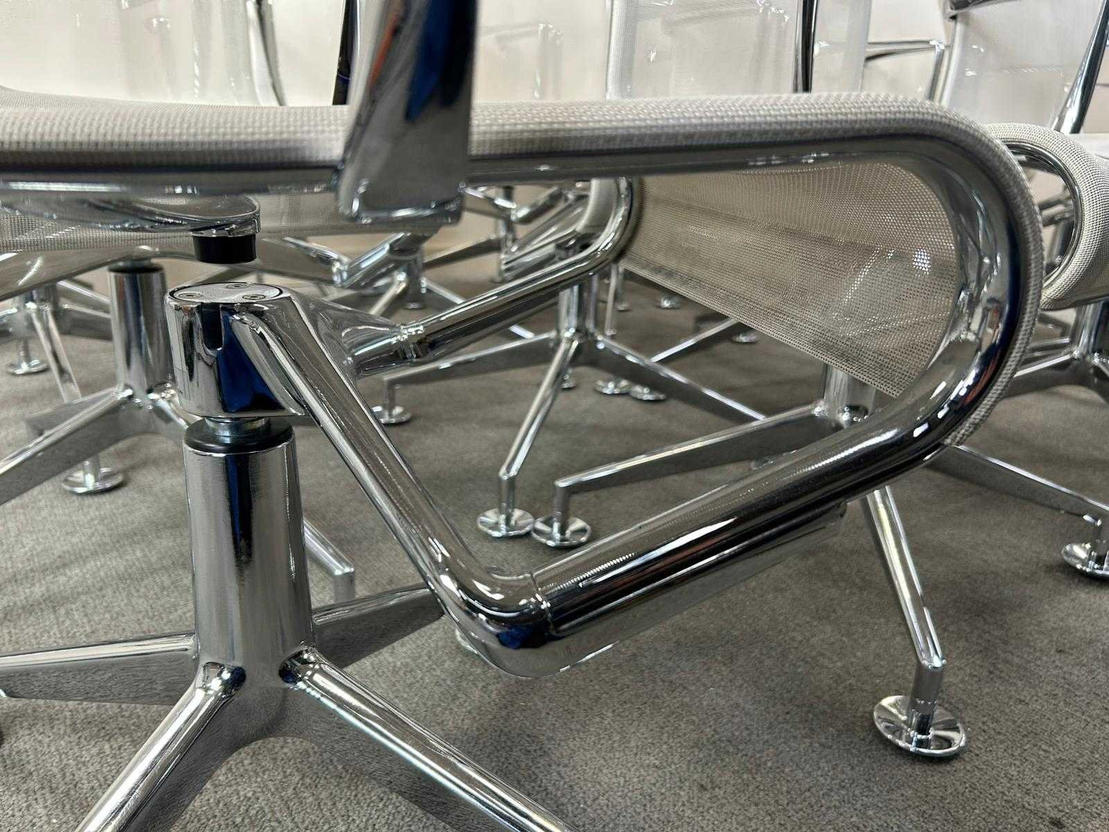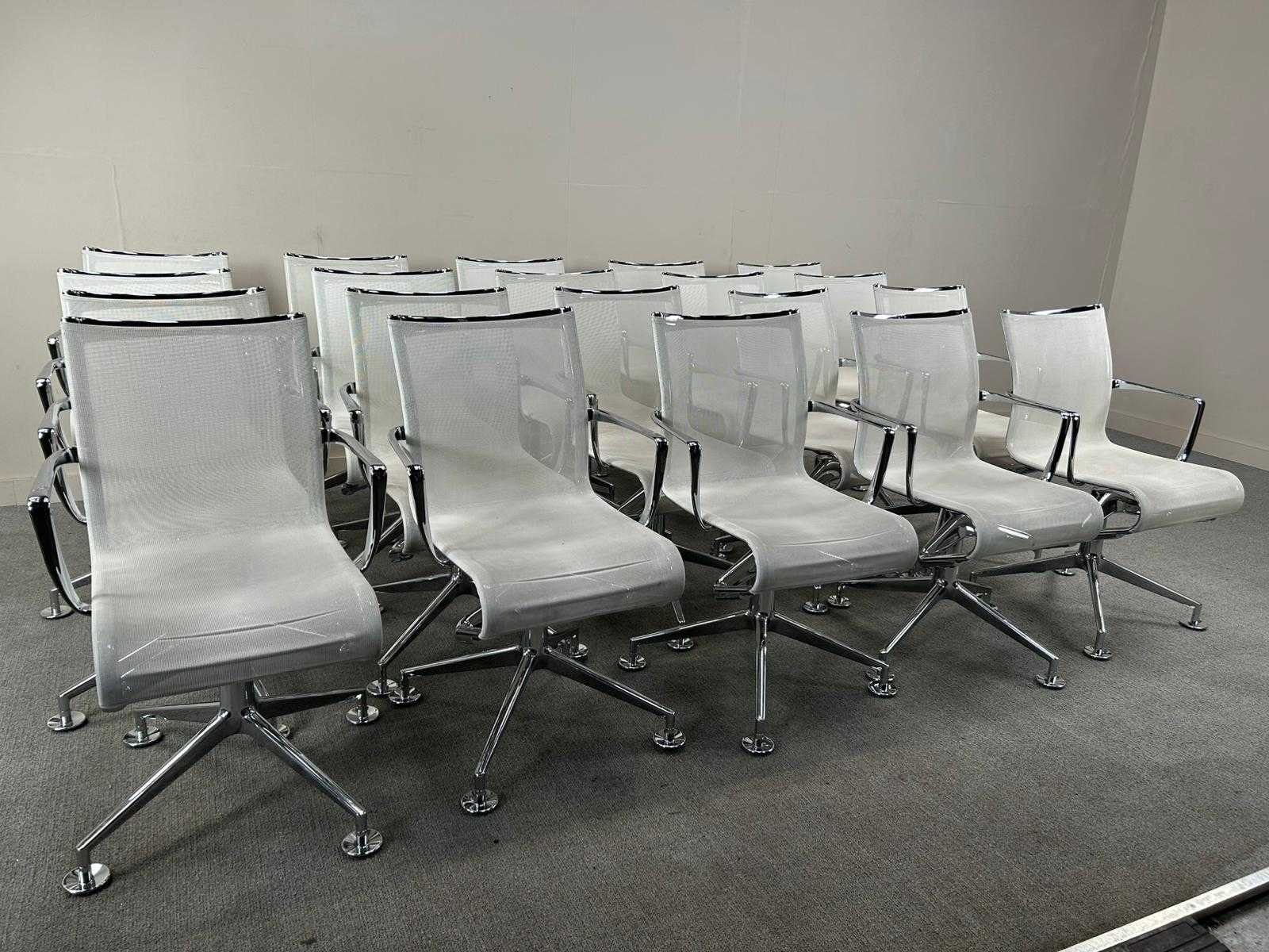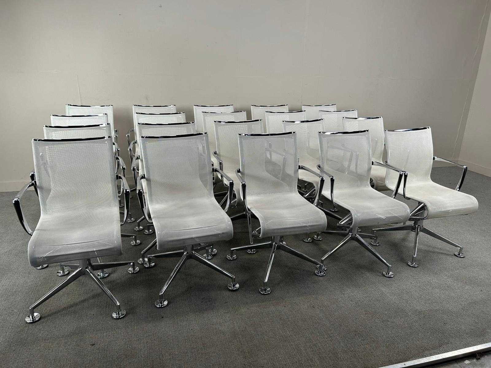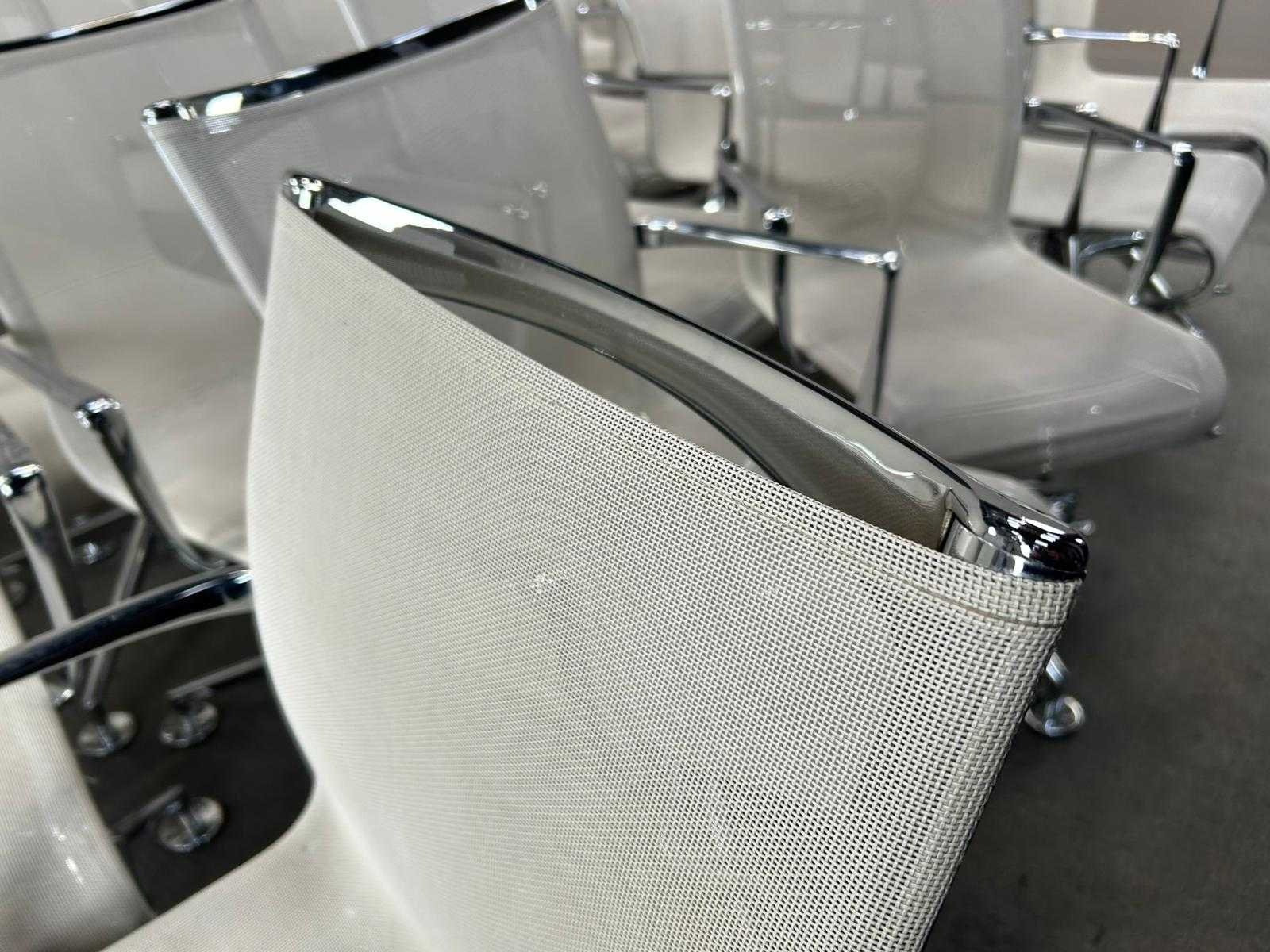 Kavel van 6 Alias vergaderstoelen uitgevoerd in witte mesh op metalen voetkruis. Nee Merk: ALIAS Type: Vergaderstoel Kleur: Wit Materiaal: Stof / Mesh