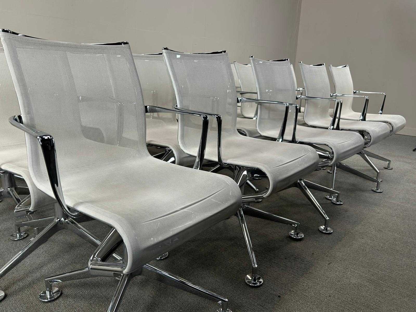 Kavel van 6 Alias vergaderstoelen uitgevoerd in witte mesh op metalen voetkruis. Nee Merk: ALIAS Type: Vergaderstoel Kleur: Wit Materiaal: Stof / Mesh