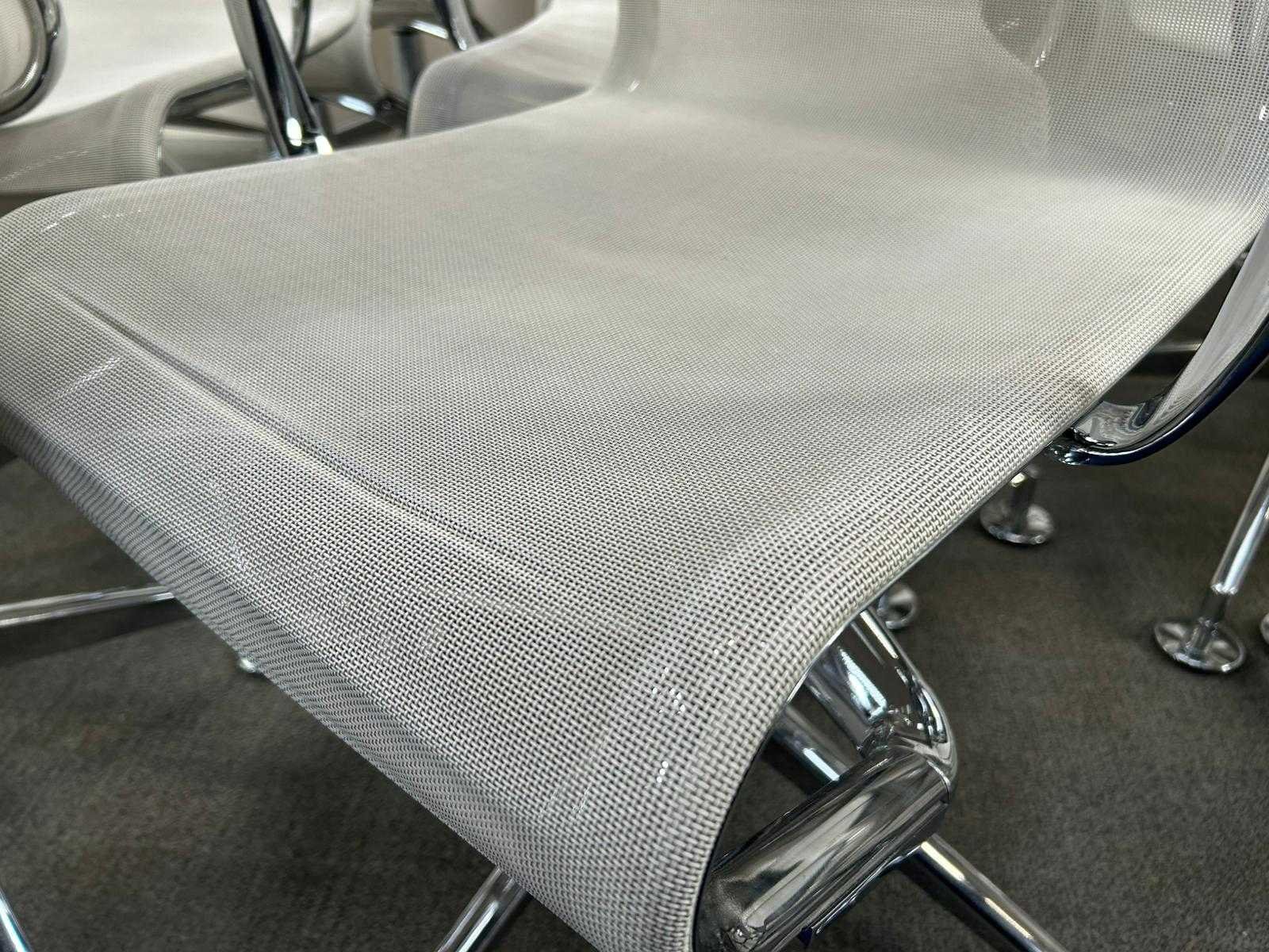 Kavel van 6 Alias vergaderstoelen uitgevoerd in witte mesh op metalen voetkruis. Nee Merk: ALIAS Type: Vergaderstoel Kleur: Wit Materiaal: Stof / Mesh