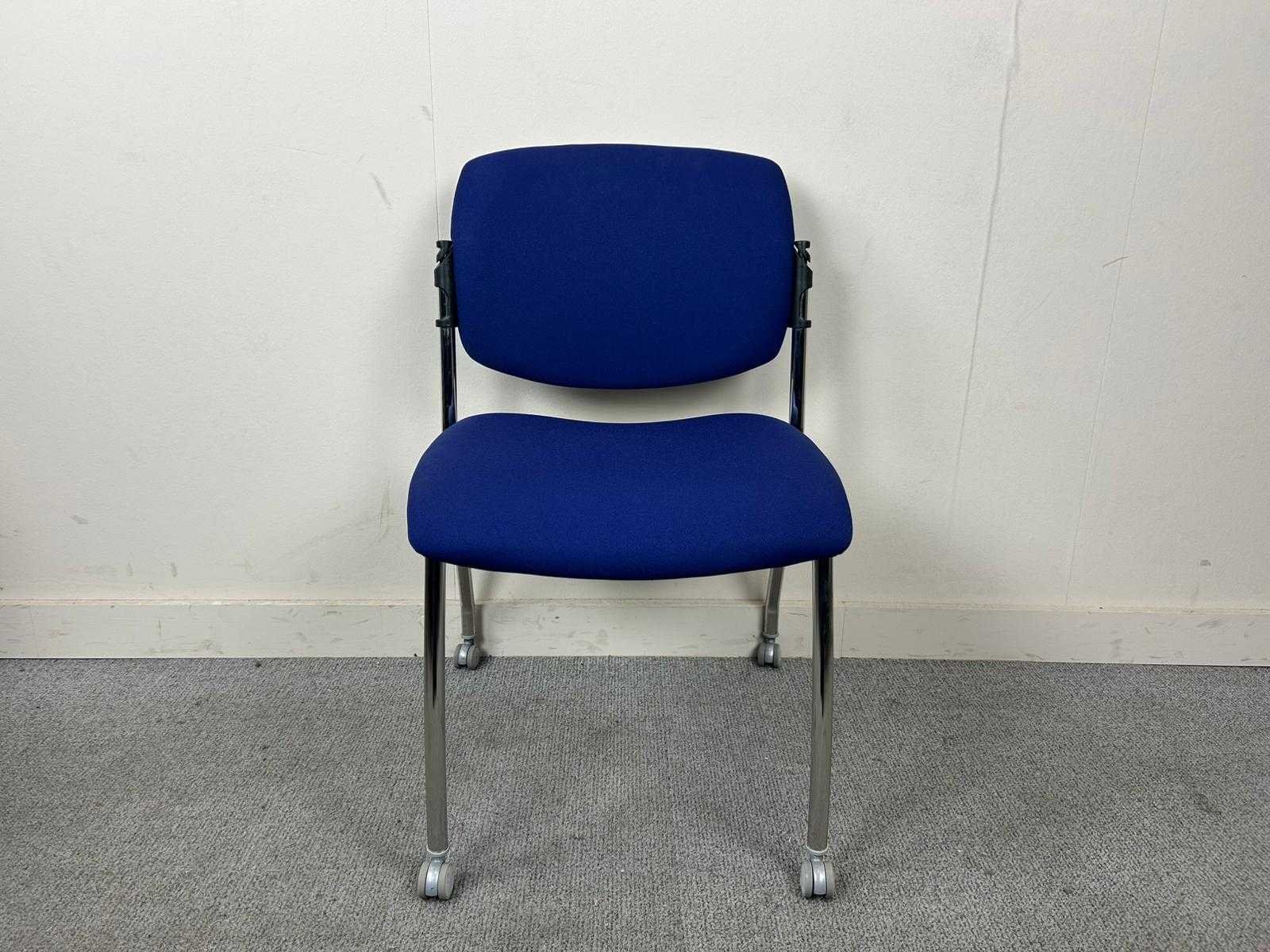Set van 5 stapelbare bezoekersstoelen in indigo blauwe stof op wielen. Staat kan variëren per item, gebruikssporen aanwezig Nee Type: Bezoekersstoel Kleur: Indigo Gewicht: 60kg Materiaal: Stof