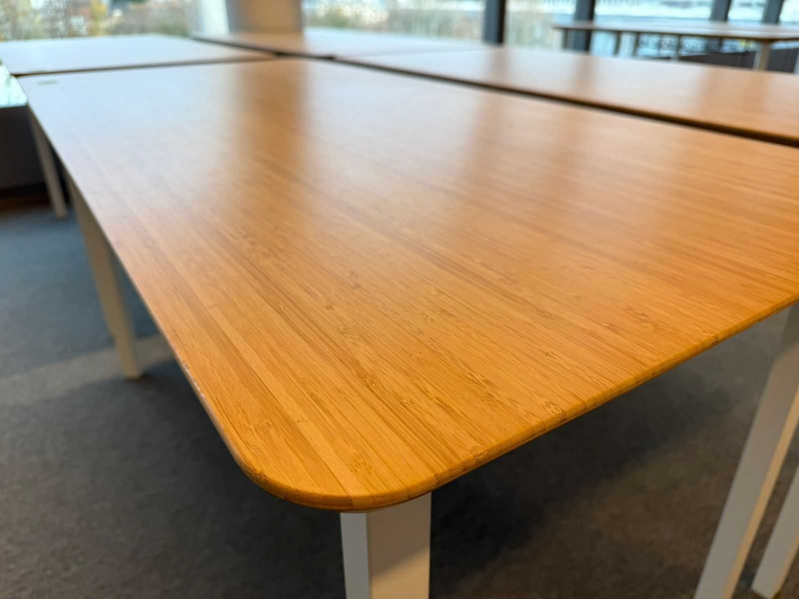 Set van 4 compacte ikea tafels met houten top en witte vierpoot. Staat kan variëren (Afmetingen per unit). No Merk: IKEA Product type: Tafel Kleur: Hout Gewicht: 75kg Lengte: 140cm Breedte: 65cm Hoogte: 73cm Materiaal: Hout