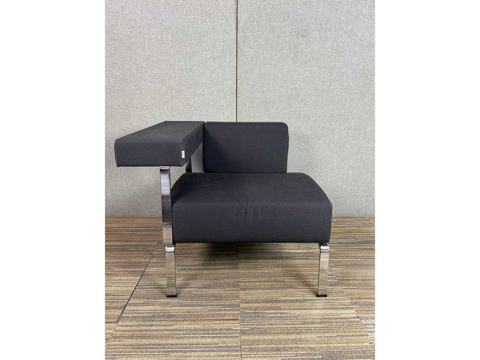 Strakke zitbank modulair met armleuning aan de rechtse kant ( bij zittende positie) chrome onderstel Nee Merk: BENE Model: Zitbank Product type: met armleuning Kleur: antraciet Gewicht: 45kg Breedte: 90cm Hoogte: 75cm Zithoogte: 44cm Diepte: 77cm Materiaal: textiel