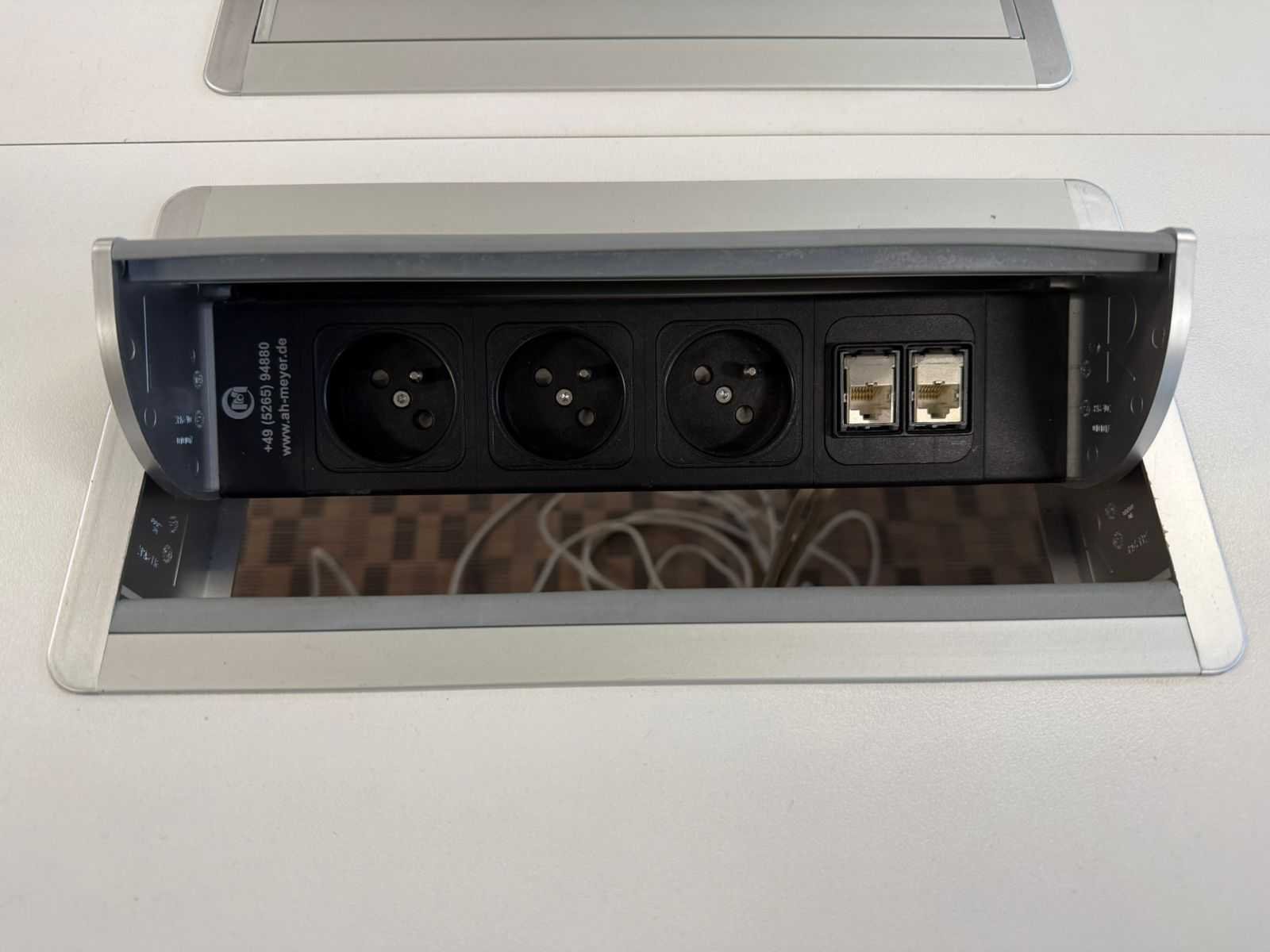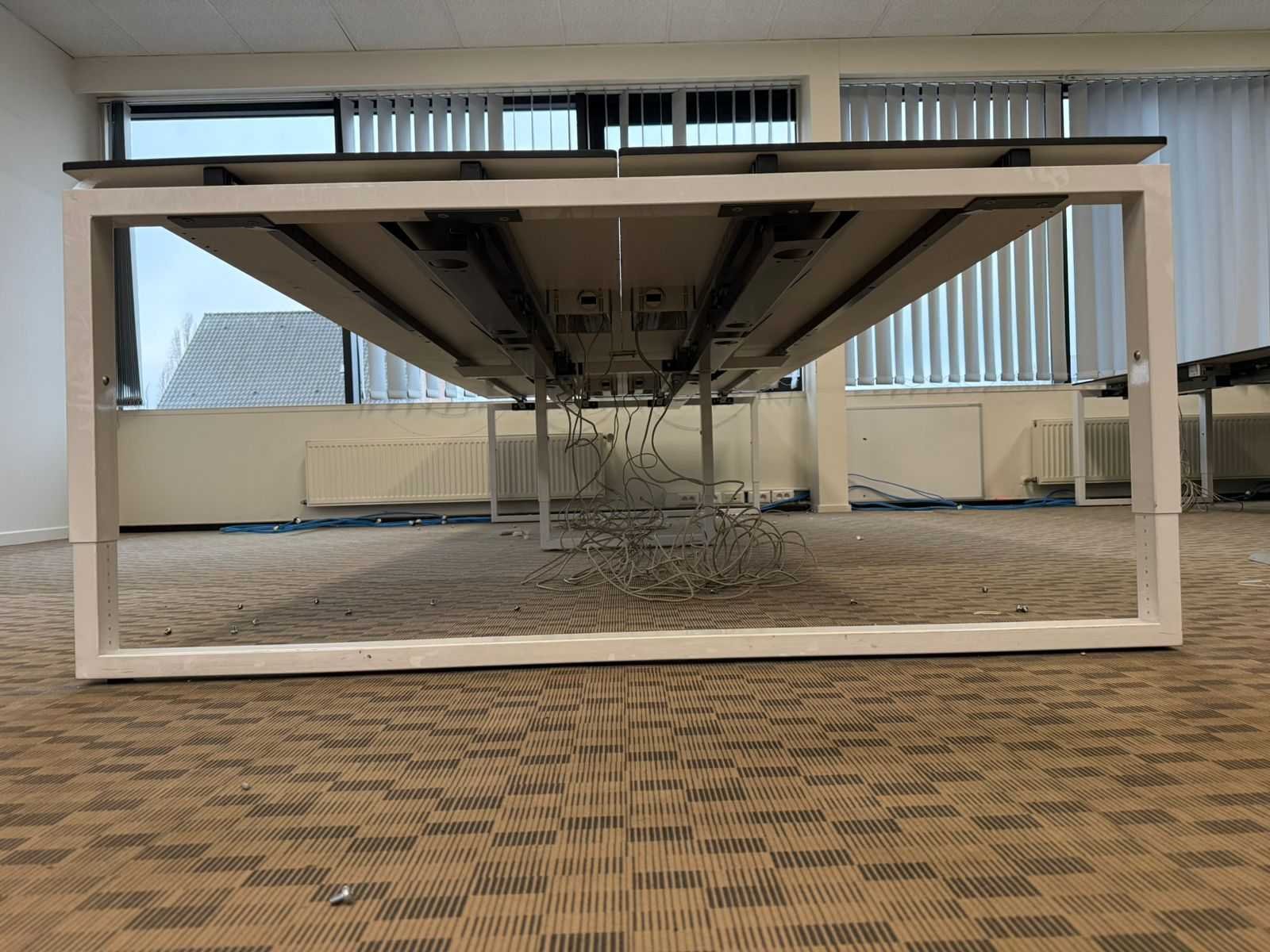 4-persoons workbench in het wit met ruime werkoppervlakte (400x160), verdeeld in 4, met individuele kabeldoorvoeren voor optimale werkruimte. Nee Product type: 4p-Workbench Kleur: Wit Gewicht: 100kg Lengte: 400cm Breedte: 160cm Hoogte: 62-85cm Materiaal: Melamine