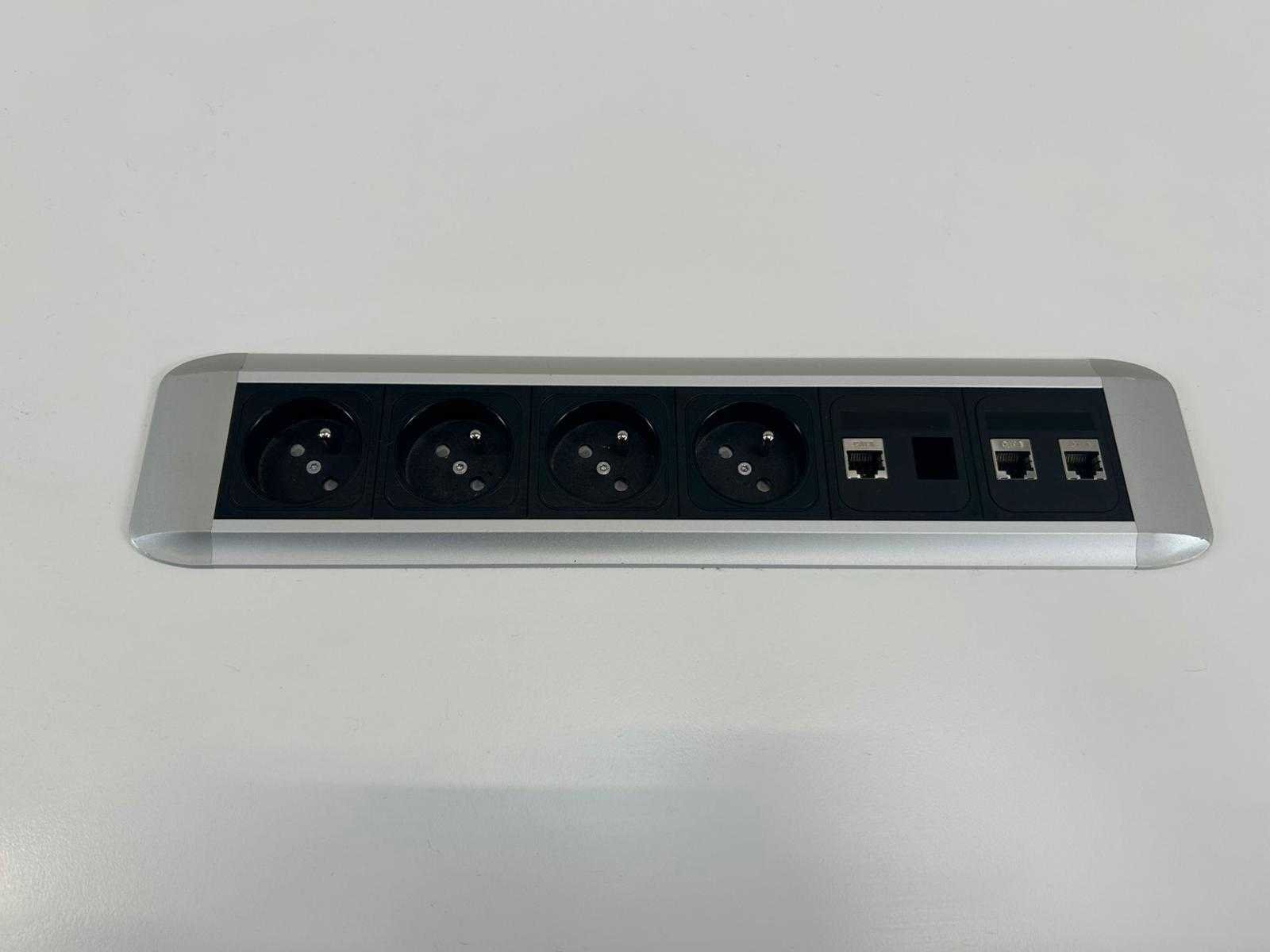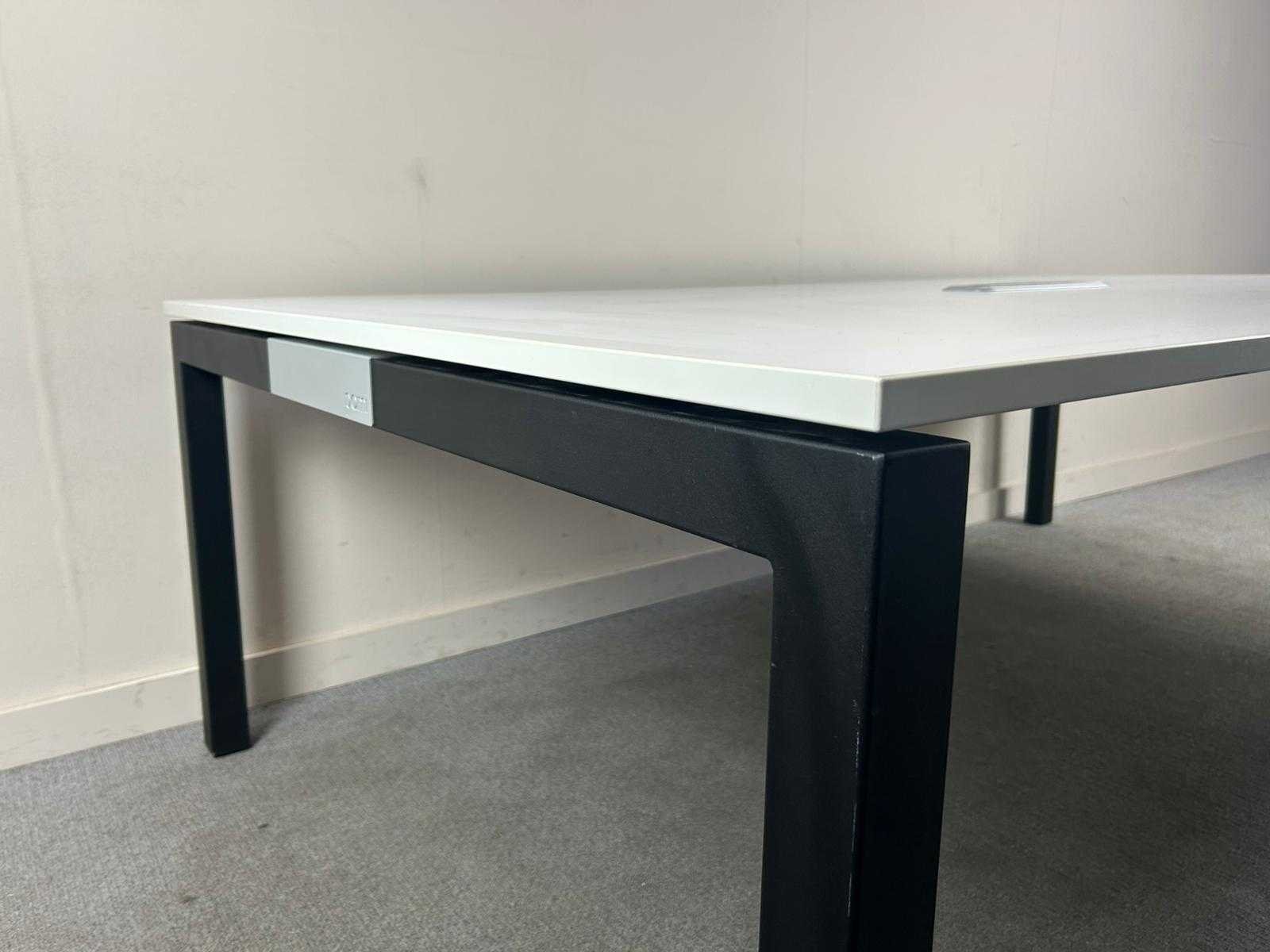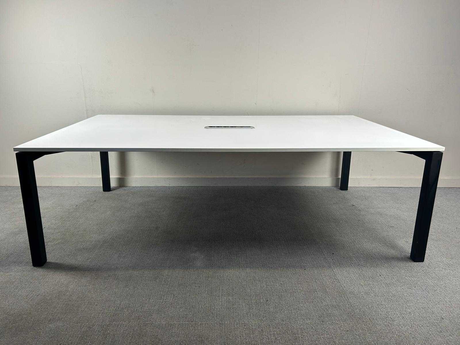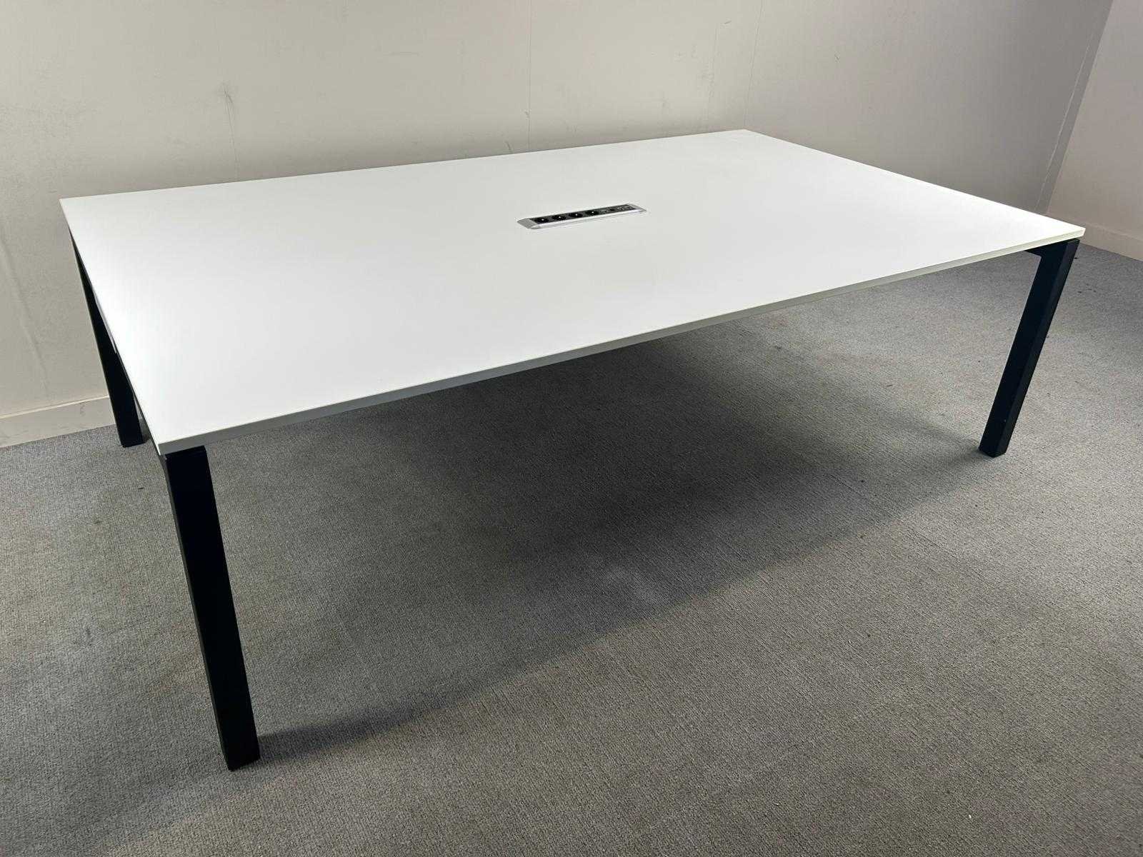 Pami witte vergadertafel met melamine blad (240x140), uitgerust met stopcontact. Enkele gebruikssporen, top is los Nee Merk: PAMI Kleur: Wit Gewicht: 70kg Lengte: 240cm Breedte: 140cm Materiaal: Melamine