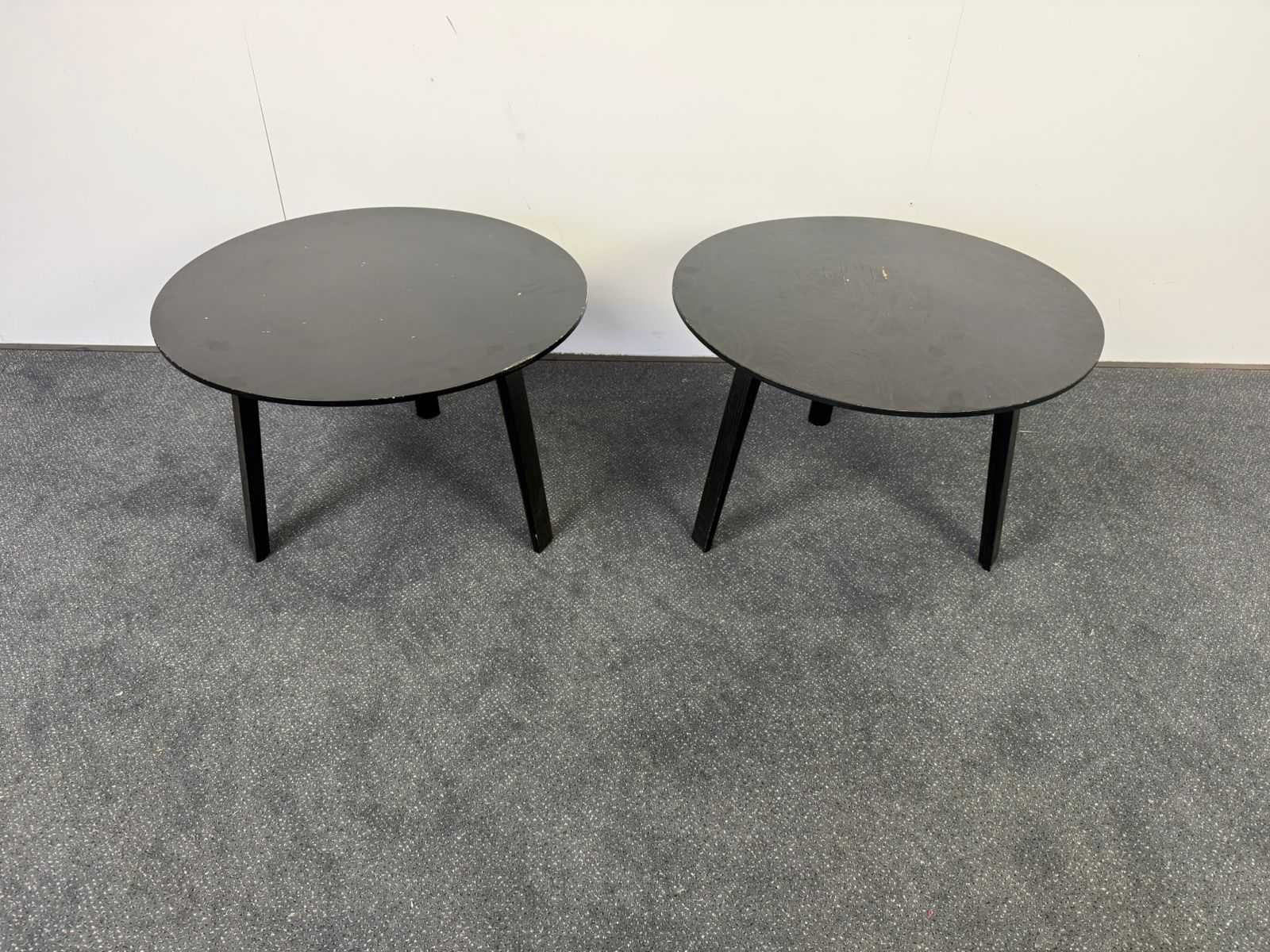 Duo van 2 HAY houten koffietafels (Diameter 60cm) op houten vierpoot. Enkele zichtbare krassen. Nee Merk: HAY Product type: Koffietafel Vorm: Rond Kleur: Hout Gewicht: 50kg Lengte: 60cm Breedte: 60cm Hoogte: 40cm Materiaal: Hout