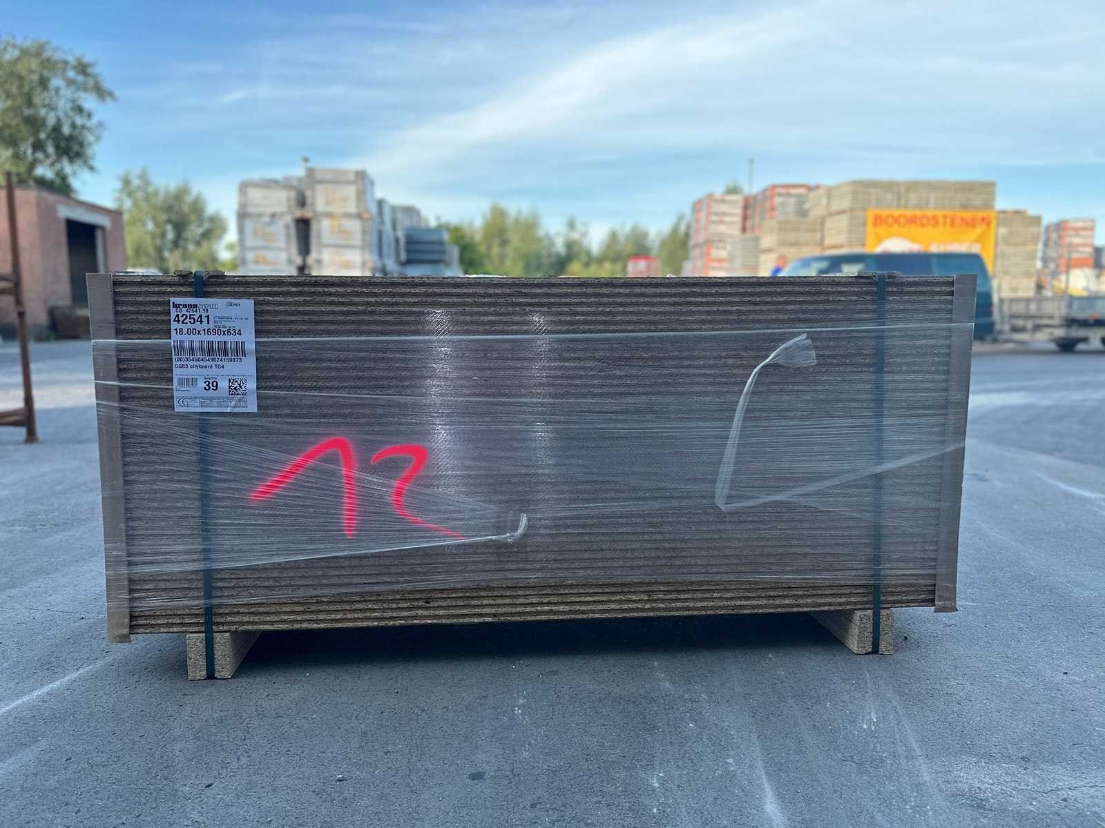 Osb platen met tand en groef restpartij, maatafwijkingen, kleine schades mogelijk. Aantal platen: 39 stuks No Dikte: 18mm Eigen gewicht: 470kg Totale afmeting L: 1690mm Totale afmeting Breedte: 630mm