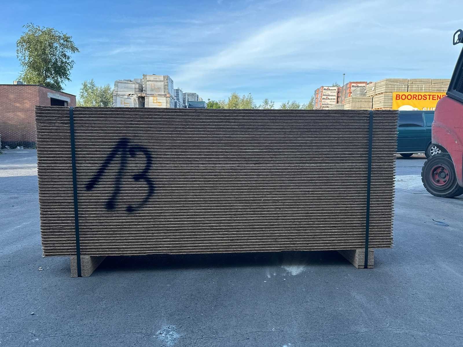 Osb platen met tand en groef restpartij, maatafwijkingen, kleine schades mogelijk. Aantal platen: 50 stuks No Dikte: 14mm Eigen gewicht: 470kg Totale afmeting L: 1690mm Totale afmeting Breedte: 630mm