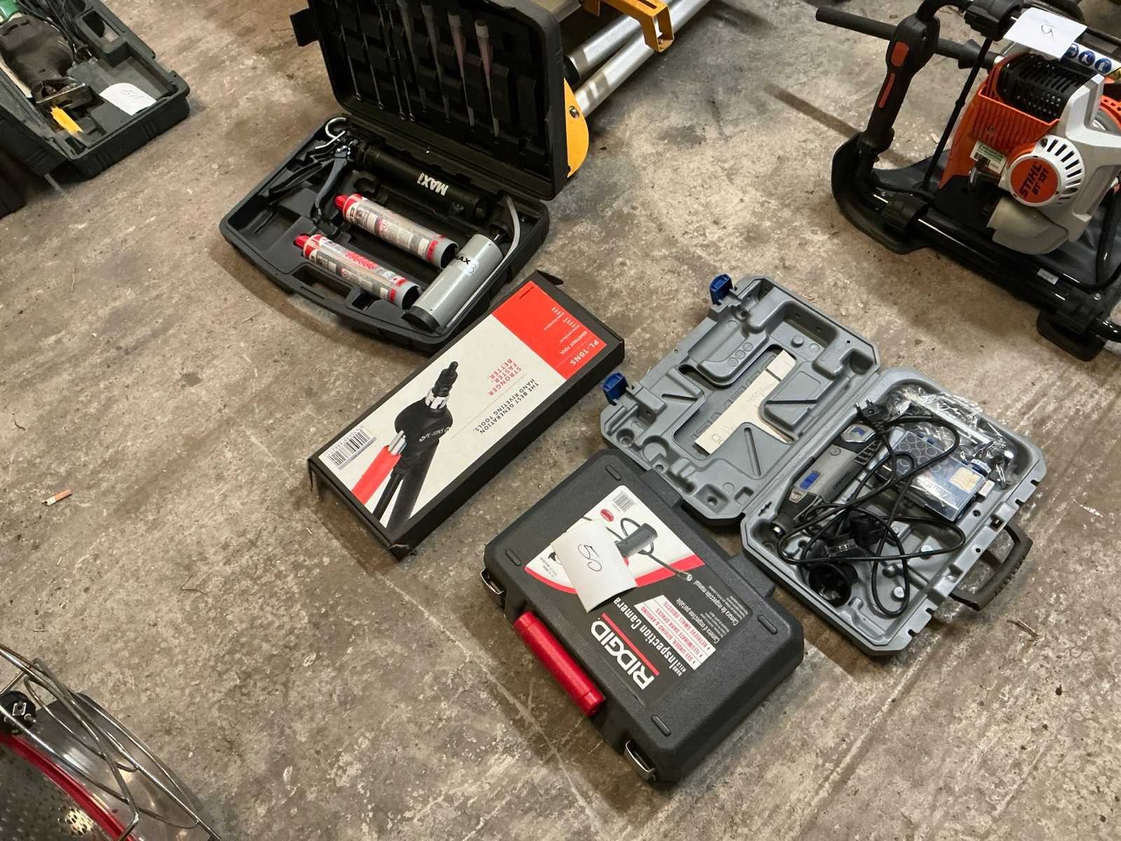 Waaronder houtfreesmachine, inspectiecamera, kitspuit en rivetnut tool. Nee