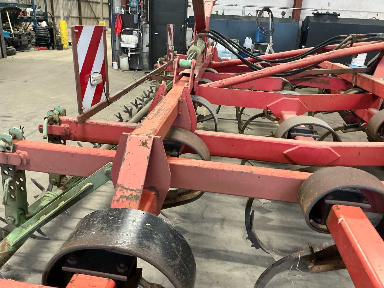 Cultivator, 13 tanden en verkruimelrol, met verlichting en breedte borden, hydraulische opklapbaar. No Merk: Steeno Bouwjaar: 1999 Serienummer: GT211099 Werkbreedte: 5000mm Opklapbaar: true Eigen gewicht: 2120kg Totale afmeting L: 3000mm Totale afmeting Breedte: 3000mm Totale afmeting Hoogte: 2600mm