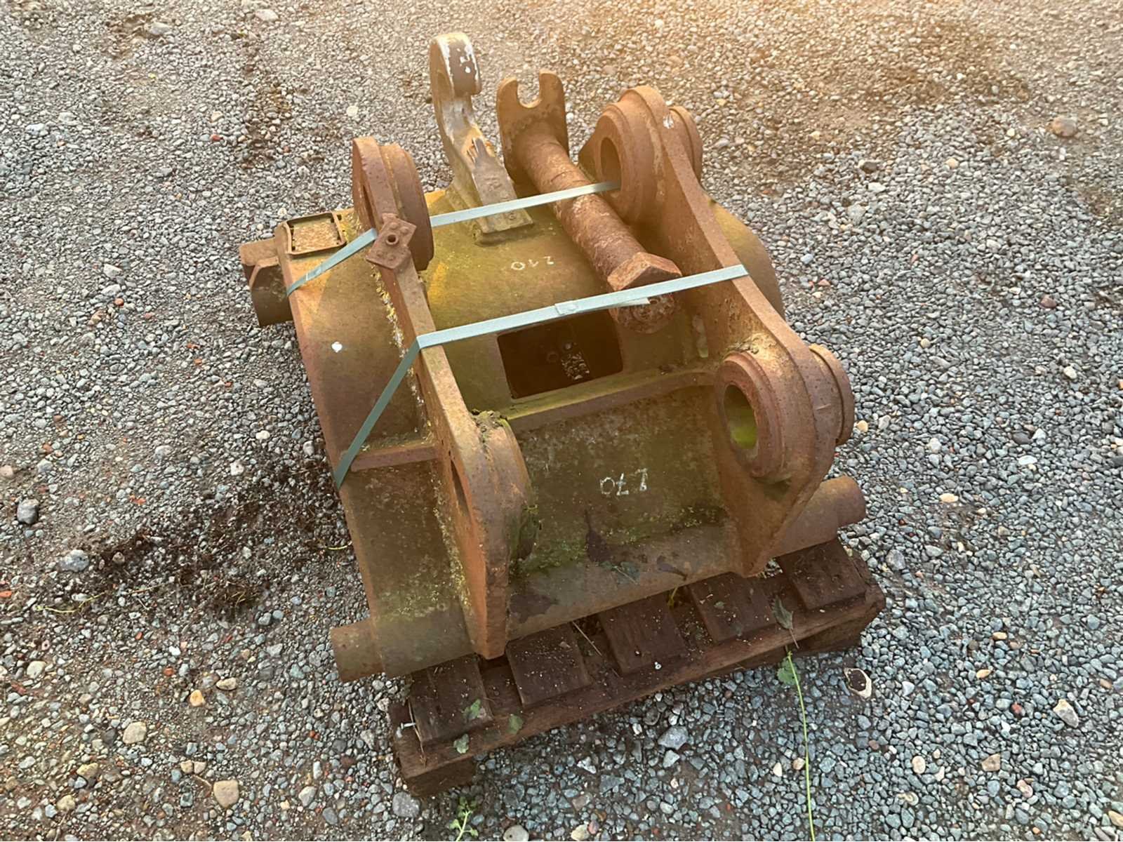 Hydraulische snelwissel met CW30 aansluiting, heavy-duty uitvoering met een draagcapaciteit van 2500 kg - Deze snelwissel is volledig opgebouwd uit massief staal en voorzien van een hydraulische vergrendelcilinder voor snel en veilig koppelen van bakken en uitrustingsstukken - Uitgerust met een geïntegreerde hijshaak en stevige koppelpennen. De snelwissel is volledig compleet en toont enkel normale oppervlakte-roest voor dit type materiaal - Geschikt voor graafmachines in de 20–30 ton klasse (o.a. Volvo, Caterpillar, Hitachi, Komatsu, Doosan…) - Kan geladen worden door de verkoper. Nee Eigen gewicht: 250kg