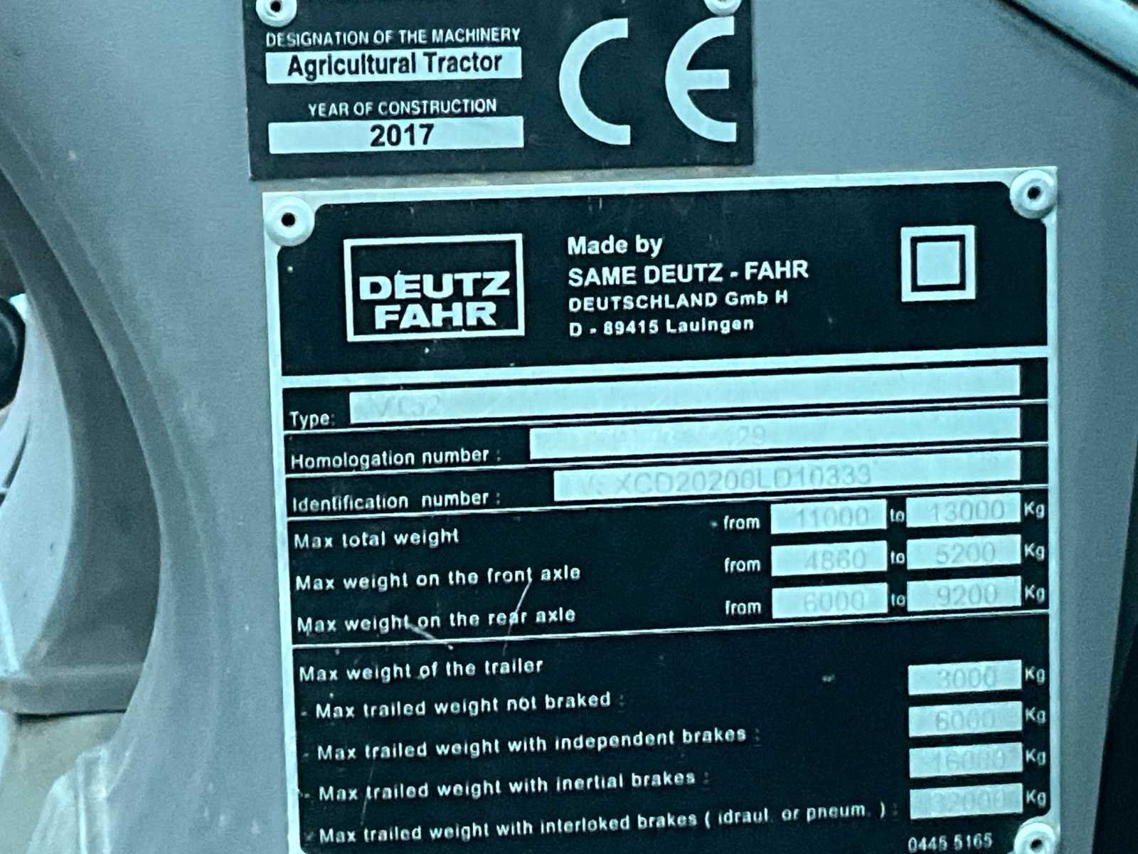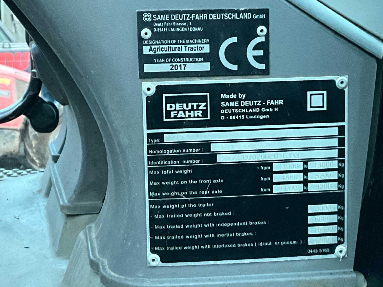 1 3-polige aansluiting 1 gewone aansluiting No Merk: Deutz-Fahr Type: 6215 TTV Agrotron Bouwjaar: 2017 Kenteken: WSXCD20200LD10333 Motorvermogen (kW): 157kW Afgelezen urenstand: 11739 Aantal hydraulische ventielen voor: 4 Aantal hydraulische ventielen achter: 8 Voorlader: true Fronthefinrichting: true Frontaftakas: true Cabine: true Luchtgeveerde stoel: true Datum eerste toelating: 02/03/2018 Nationaliteit documenten: BE