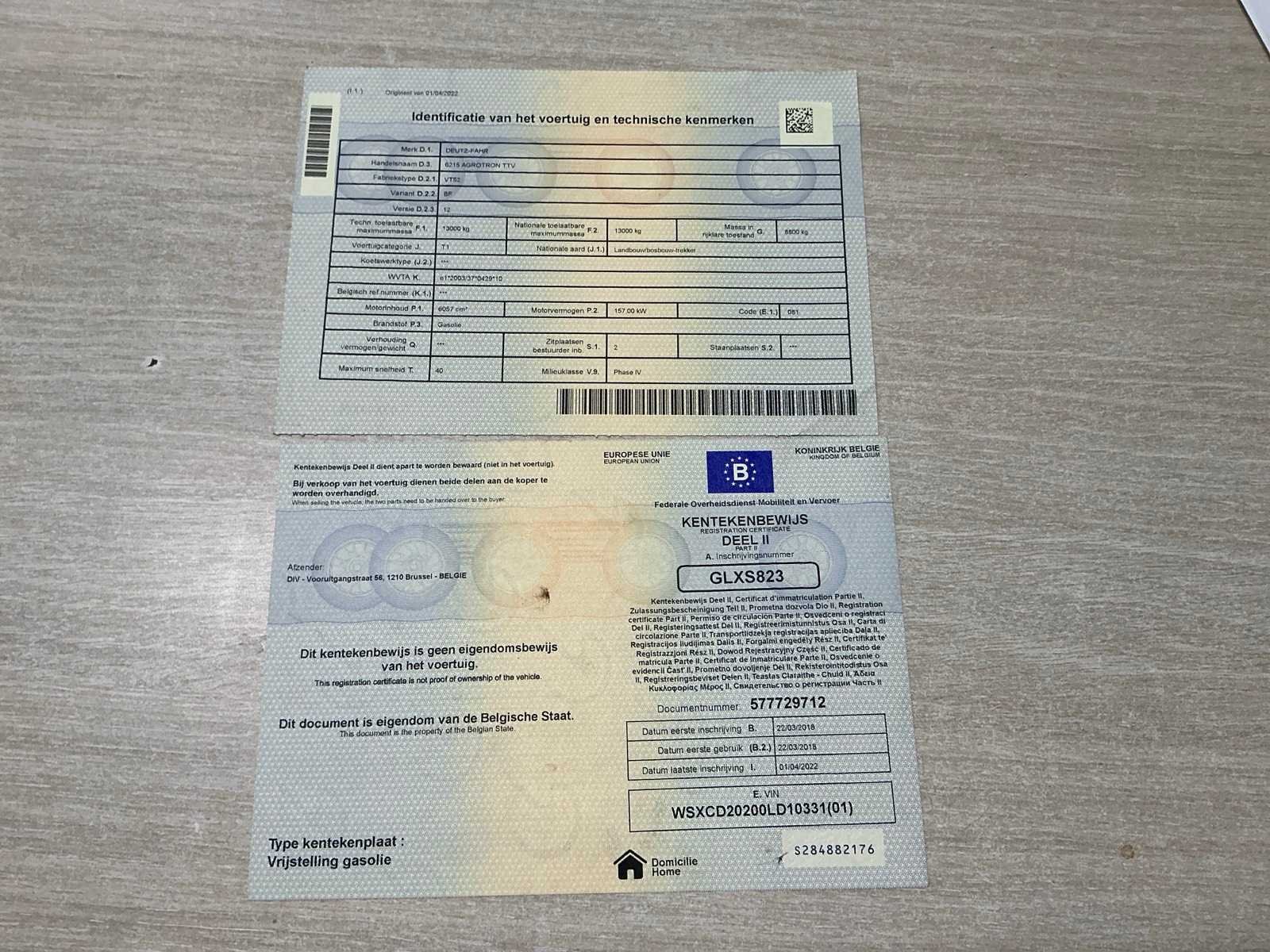 Nee Merk: Deutz-Fahr Type: 6215 AGROTON TTV Bouwjaar: 2018 Motorvermogen (kW): 157kW Afgelezen urenstand: 5100 Versnellingsbaktype: Vario Tractloos Aantal hydraulische ventielen voor: 1 Aantal hydraulische ventielen achter: 5 Fronthefinrichting: true Cabine: true Luchtgeveerde stoel: true Chassisnummer: WSXCD20200LD10331 Nationaliteit documenten: Belgisch