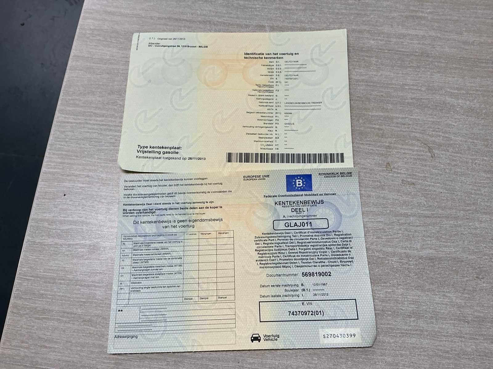 Nee Merk: Deutz-Fahr Type: DX6.10 Bouwjaar: 1987 Afgelezen urenstand: 9075.7 Aantal hydraulische ventielen voor: 0 Aantal hydraulische ventielen achter: 2 Frontgewichtenset: true Cabine: true Chassisnummer: 74370972 Datum eerste toelating: 12/01/1987 Nationaliteit documenten: Belgisch