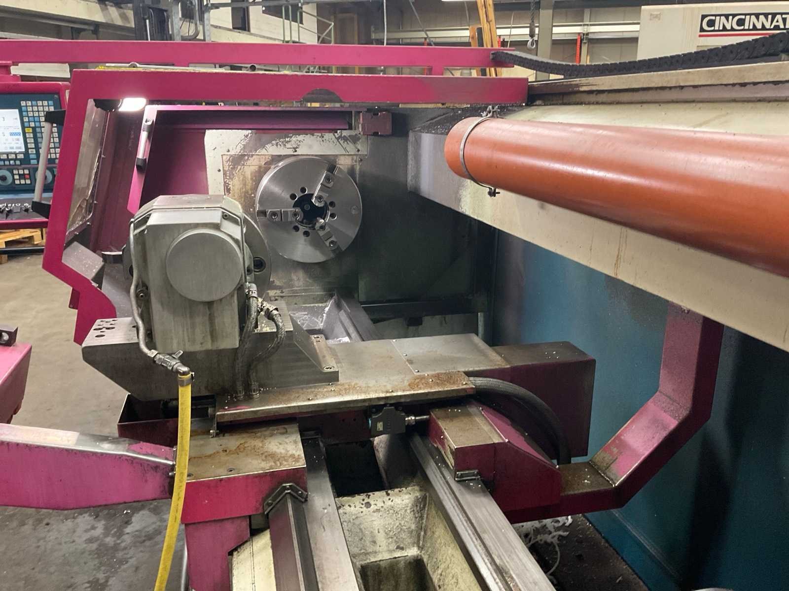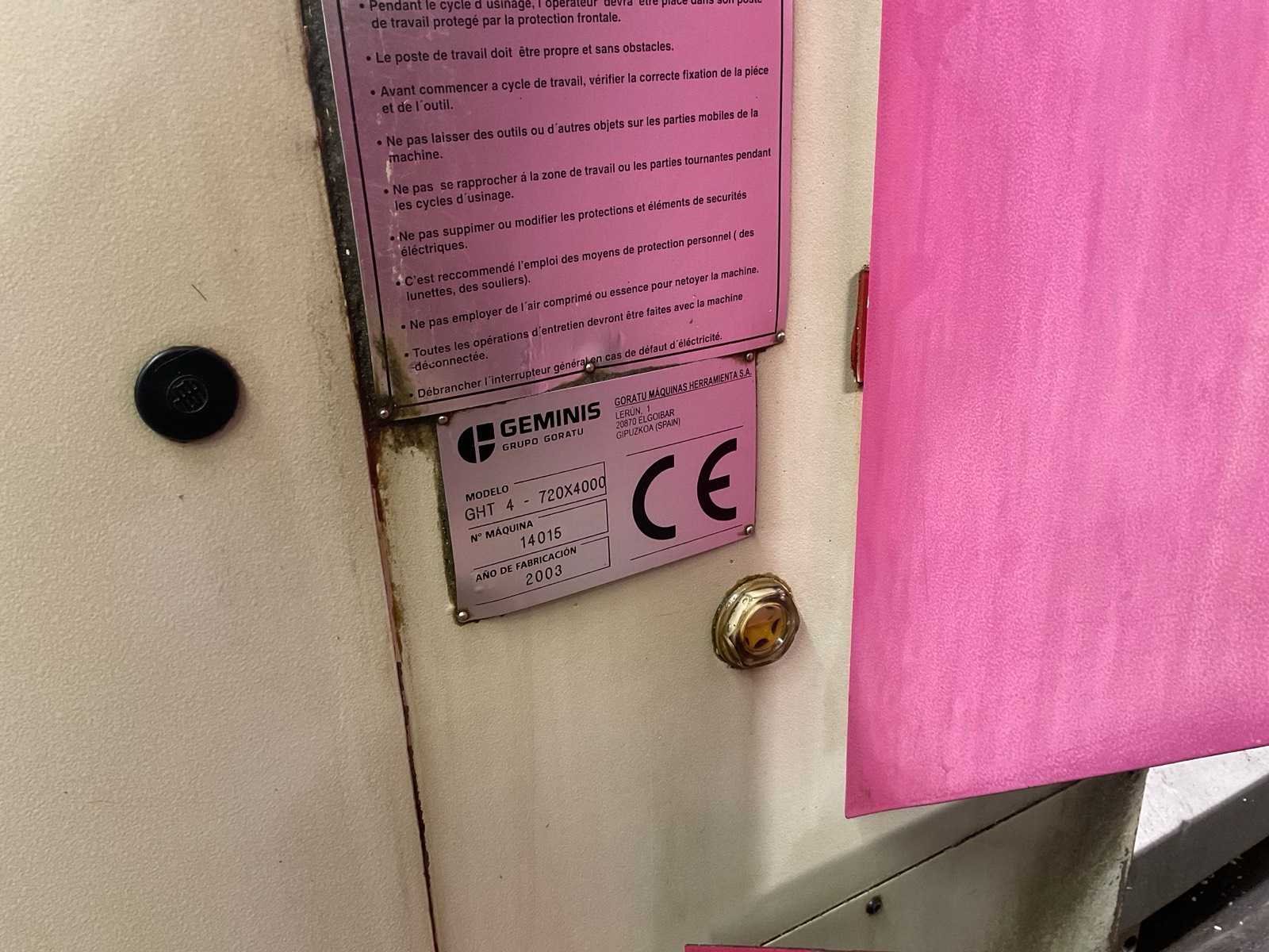 Machine voert alle functies uit Volledige Documentatie/ Handleidingen meegeleverd 4 brillen inbegrepen En klauwplaat Partij gereedschappen inbegrepen Nee Merk: Geminis Type: GHT4-720x4000 Bouwjaar: 2003 Draai: 720mm Draailengte: 4000mm Holle spil Ø: 140mm Snelheid van n =: 0rpm Snelheid tot n =: 1600rpm Aantal gereedschapwisselstations: 8 Koelmiddelpomp: true Spanentransporteur: true CNC-besturing, merk, type: Fagor CNC 8055T Motorvermogen (kW): 17kW Aansluiting: 380V Machinegewicht: 6500kg Afmeting l: 6300mm Afmeting b: 1900mm Afmeting h: 1800mm
