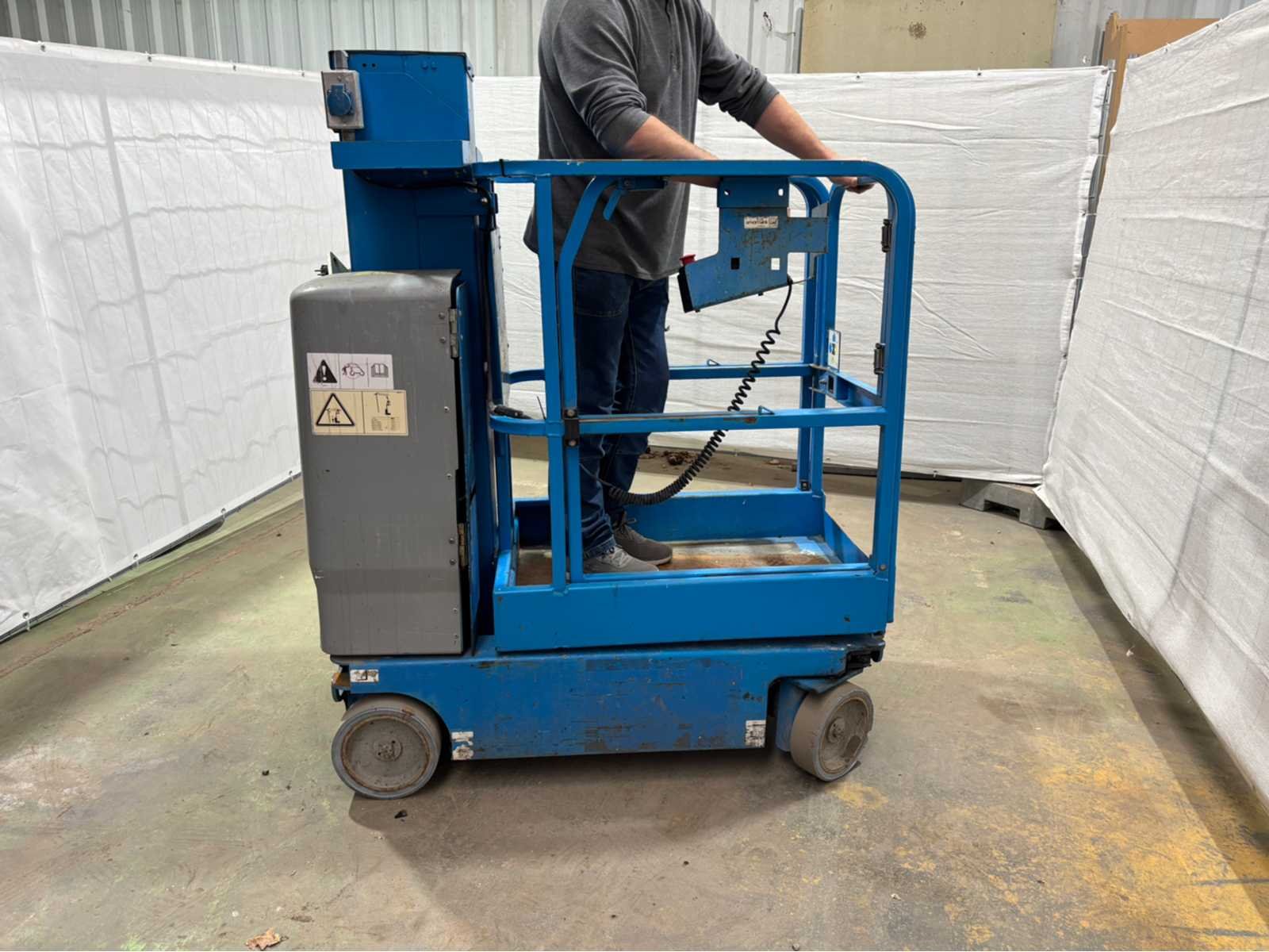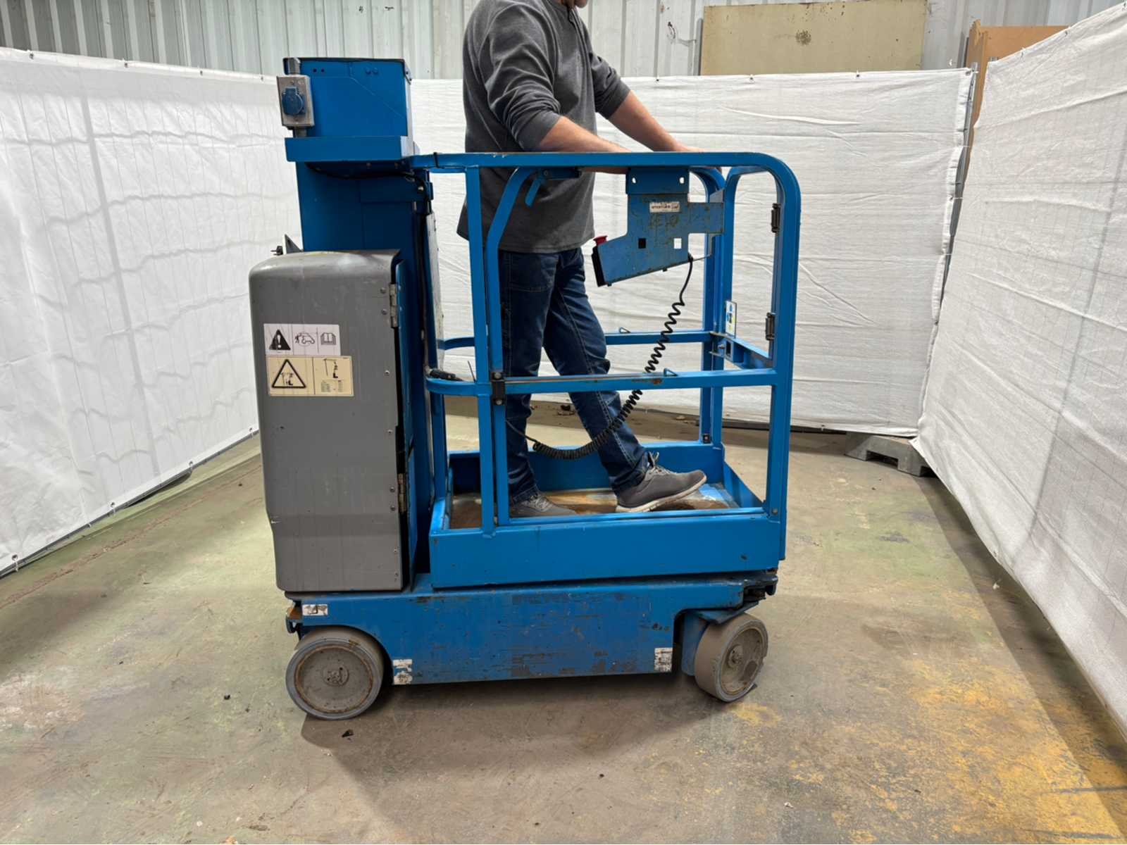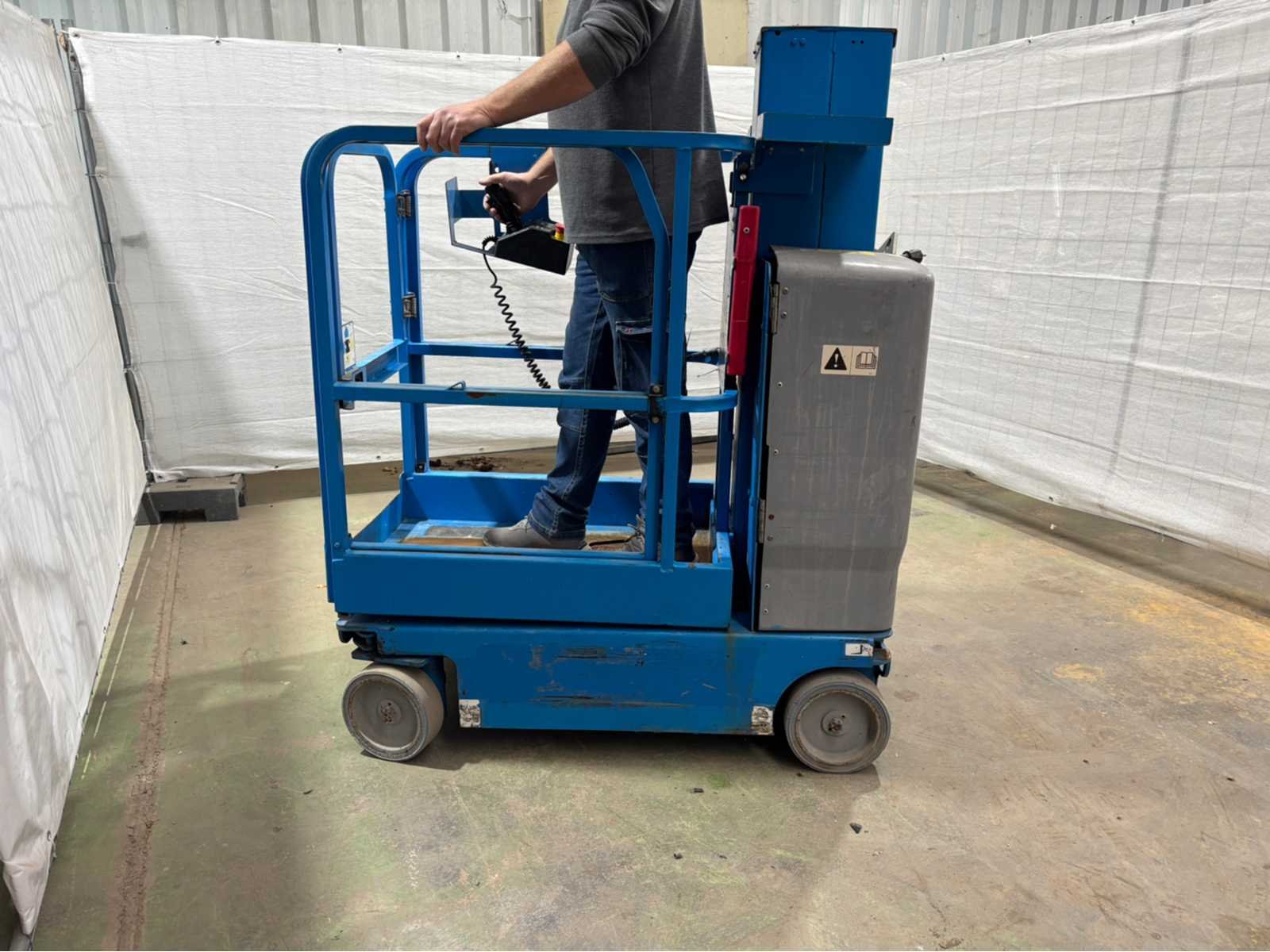Deze hoogwerker verkeert in nette gebruikte staat en is VOLLEDIG FUNCTIONEEL - Urenstand slechts 173 uur, dus weinig gebruikt - Compacte en betrouwbare Genie GRC12 masthoogwerker, ideaal voor onderhouds- en installatiewerkzaamheden binnen gebouwen - Dankzij de elektrische aandrijving is de machine stil, schoon en onderhoudsarm - De ingebouwde acculader maakt opladen bijzonder eenvoudig: gewoon aansluiten op een standaard 230V stopcontact en de machine laadt automatisch op - De GRC12 biedt een stabiele werkhoogte tot 5,45 meter en een platformcapaciteit van 227 kg, ideaal voor één persoon met gereedschap - Door de smalle bouwbreedte van slechts 75 cm past de machine moeiteloos door deuropeningen en is hij perfect inzetbaar in magazijnen, fabriekshallen of winkels Nee Merk: Genie Type: GRC-12 Bouwjaar: 2013 Serienummer: GRC13-1463 Elektrisch: true Masthoogwerker: true Werkhoogte: 5700mm Platform capaciteit: 227kg Accu lader: true