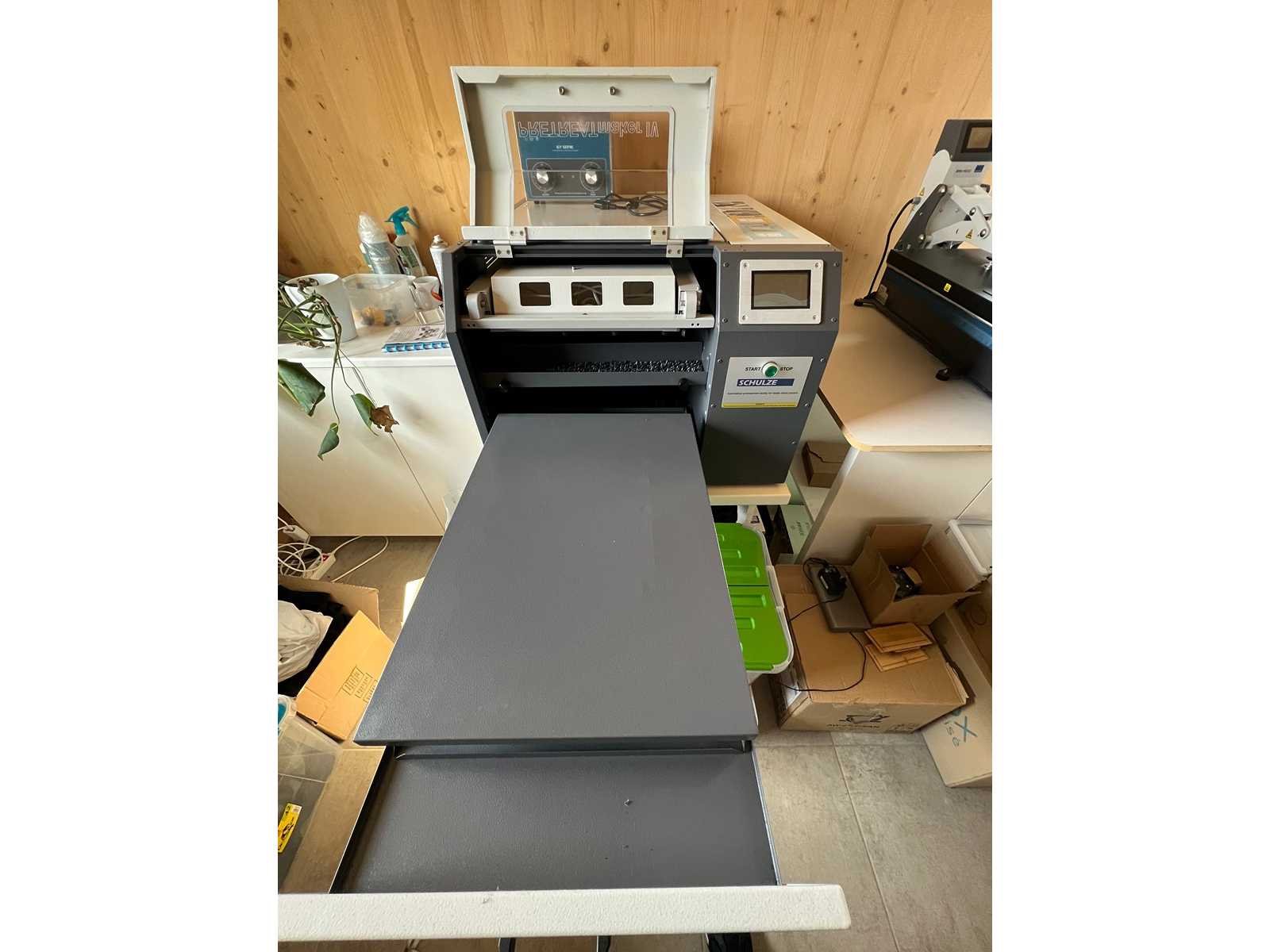 Le Schulze Pretreatmaker IV est une machine professionnelle conçue pour appliquer un prétraitement uniforme sur les textiles, principalement pour l'impression DTG (Direct to Garment). Il permet de préparer efficacement les surfaces textiles pour garantir une meilleure adhérence de l'encre, une couleur plus vive et une durabilité accrue des impressions. Caractéristiques principales : -Type de machine : Préparateur de textile automatisé pour application de prétraitement . - Capacité : Adapté pour le traitement de plusieurs vêtements simultanément, avec une capacité d'environ 10 à 20 pièces selon la taille. - Systèmes d’application : Pulvérisation uniforme du prétraitement avec réglages précis. - Réglages ajustables : Vitesse, volume d’application, humidité, et température pour une personnalisation optimale. - Système de nettoyage : Facile à nettoyer pour éviter les bouchages et maintenir une application homogène. Avantages : - application homogène : Répartition uniforme du produit de prétraitement, améliorant la qualité d’impression. - Gain de temps : Automatisme permettant de réduire le temps de préparation par rapport à une application manuelle. - Qualité constante :Réglages précis assurant une qualité d’application constante pour chaque vêtement. - Facilité d’utilisation : Interface intuitive pour l’opérateur, avec réglages simples. Applications : - Préparation textile pour impressions DTG ou sérigraphie numérique. - Optimisation de la qualité d’impression sur différents types de textiles (coton, mélanges). - Production pour boutiques, studios d’impression ou ateliers de personnalisation. Entretien et maintenance : - Nettoyage régulier des pièces de pulvérisation et des conduits. - Vérification des niveaux de liquide de prétraitement et remplissage selon besoin. - Calibration périodique pour garantir la précision de l’application. Nee Merk: Le Schulze Type: Pretreatmaker IV