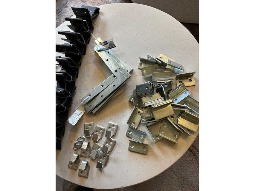 106 x diverse beugels -haakjes-scharnieren. 10 X ophanghaakjes 16 x Gamma winkelhoek /raamhoek 50 x hoekje 20 x plat plaatje 10x scharnier Kunnen verstuurd worden Nee