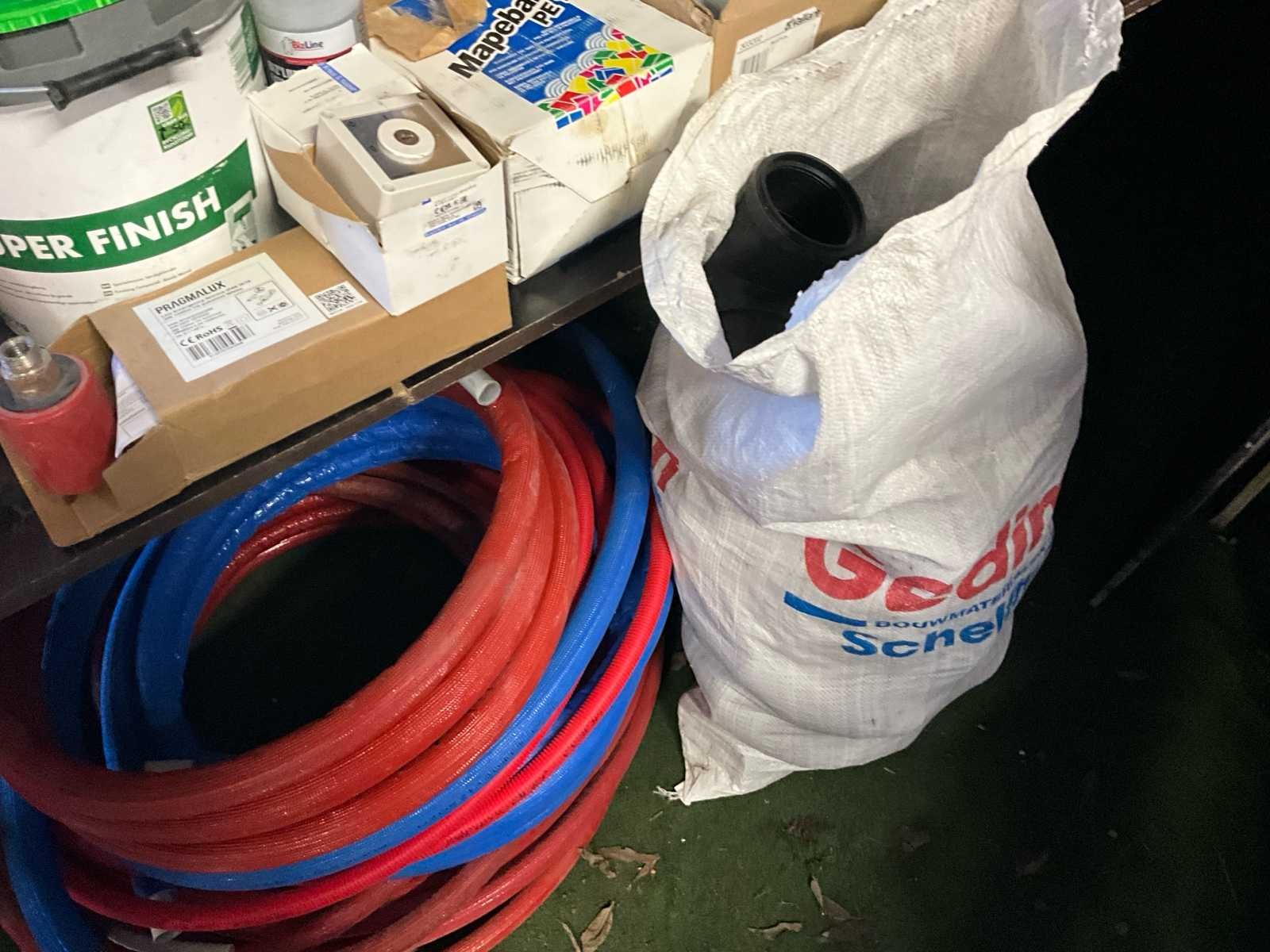 Materiaal op en onder de tafel & pvc buizen buiten Nee
