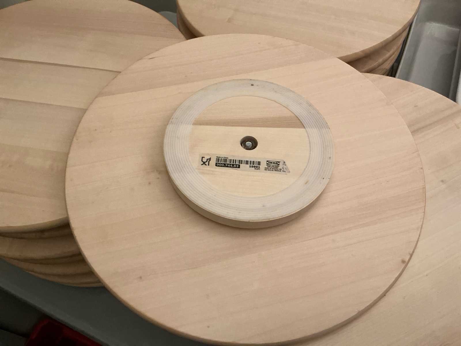 Lot van 21 aperitief schotels op draaiende voet. In hout. No