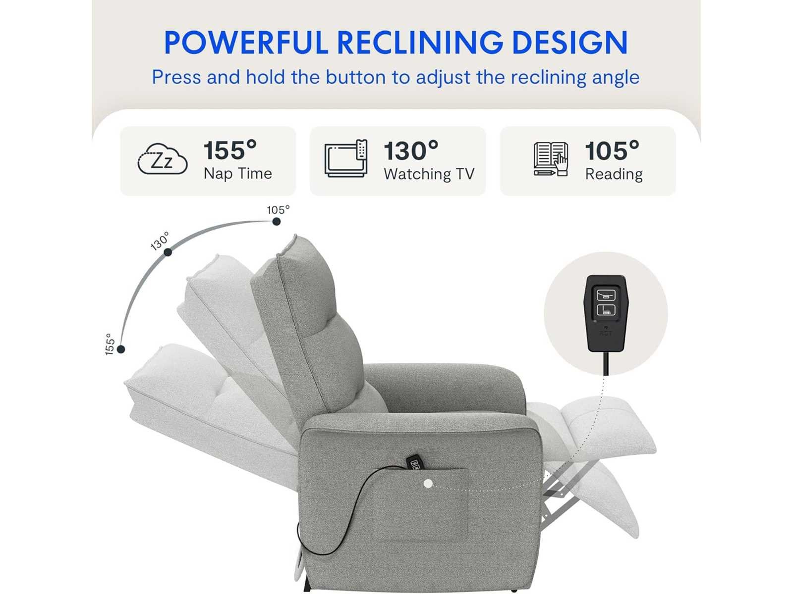 Merknaam FLEXISPOT Kleur Lichtgrijs Productafmetingen: 82P x 77B x 104H centimeter Basisgrootte Rugstijl Massieve Rug Eenvoudig patroon BEEN- EN RUGVERSTELLING: Onze elektrische stoel maakt gebruik van gelijktijdige been- en rugaanpassingstechnologie om het tillen en neerzetten met een knop te regelen. Met een hoekaanpassing van 125° tot 165° is het alleen maar een druk op de knop nodig om de stoel zo te verstellen dat je kunt lezen, tv kijkt of een dutje kunt doen in een comfortabele houding. Non