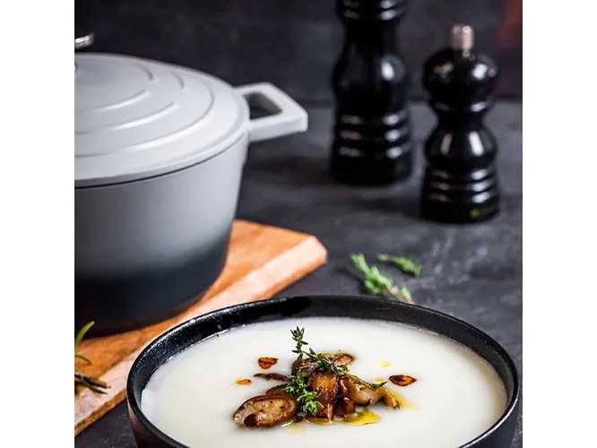 De MasterClass Ombre Grey Cast Aluminium ovenschaal 24 cm en 4 L is een uitstekende warmtegeleider en heeft een krasbestendige dubbele laag anti-aanbak. REVOLUTIONAIR GIETALUMINIUM BAKKEN: De 24 cm, 4L getinten grijs gegoten aluminium MasterClass ovenschaal kookt als een gietijzeren ovenschaal, maar is lichtgewicht en handig. BAKPLAAT BAKKEN: Geschikt voor gebruik in de oven en op bakplaten, waarbij de warmte snel en gelijkmatig wordt verdeeld. ZWARE ANTIAANBAKCOATING: De twee lagen anti-aanbaklaag op deze pan zorgen voor uitstekende slijtvastheid. ZELFBESPRENKELEND DEKSEL: Geniet van extra vettige stoofschotels en rijke stoofschotels in één gerecht, dankzij het vochtbehoudende deksel. Compatibel met alle soorten kookplaten, inclusief inductie. Vaatwasserbestendig voor eenvoudige schoonmaak. Breedte: 24 cm. 25 jaar garantie voor volledige gemoedsrust. Non