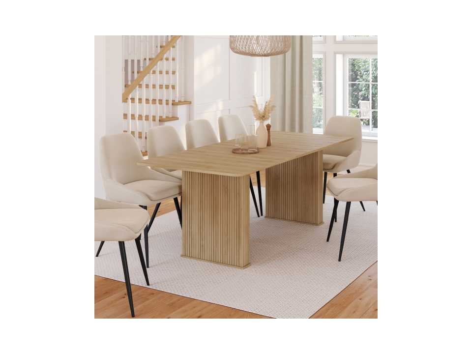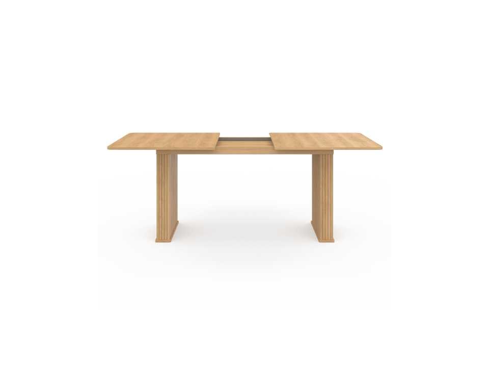 Totale afmetingen: (L) 160/200 x (B) 90 x (H) 75 cm Extensiet: 40 cm Totale hoogte van de bovenkant: 1,8 cm Basisafmetingen: (L) 12 x (B) 57 cm Standaardafmetingen: (L) 10 x (W) 55 cm Ruimte tussen de poten: 114 cm Materialen: 15/18 mm MDF Lengte van een lat: 1,7 cm Kleur: hout Stel jezelf bij elkaar: ja 6 tot 10 personen Non