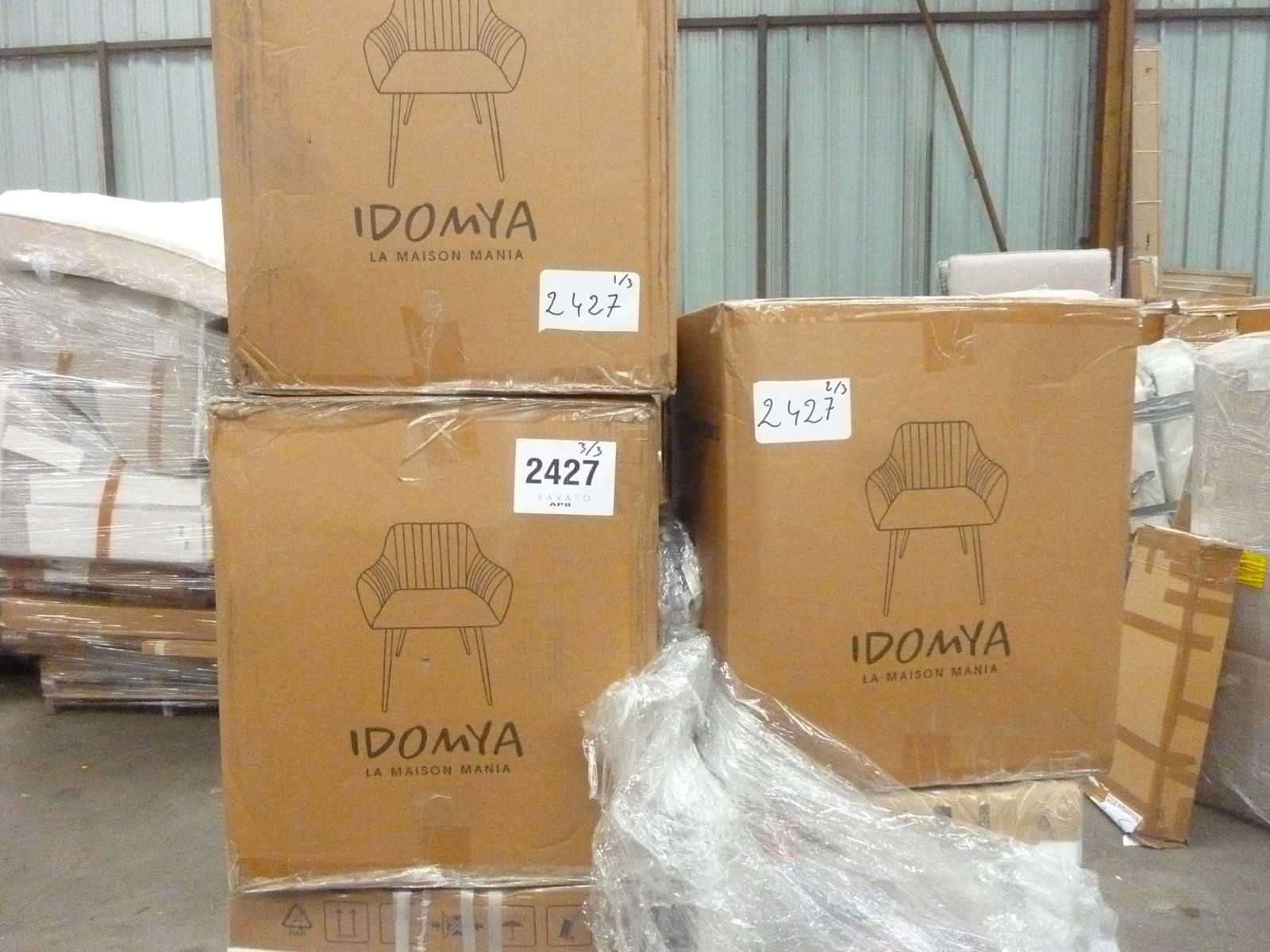 Stoel met fluwelen armleuningen en metalen poten (x6)
