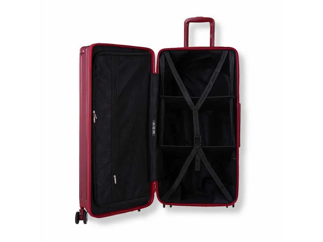 Gewicht: 4,5 kg Afmetingen: 70 x 37 x 41 cm (wielen en handvatten inbegrepen) Volume: 100 L Ondersteund gewicht: 28 kg Wielen: 4 x 360° dubbele wielen Materialen: 100% polycarbonaat Interieurinrichting: Gestoorde lade-achtige vakken + scheidingswanden en riemen Non