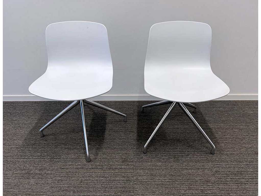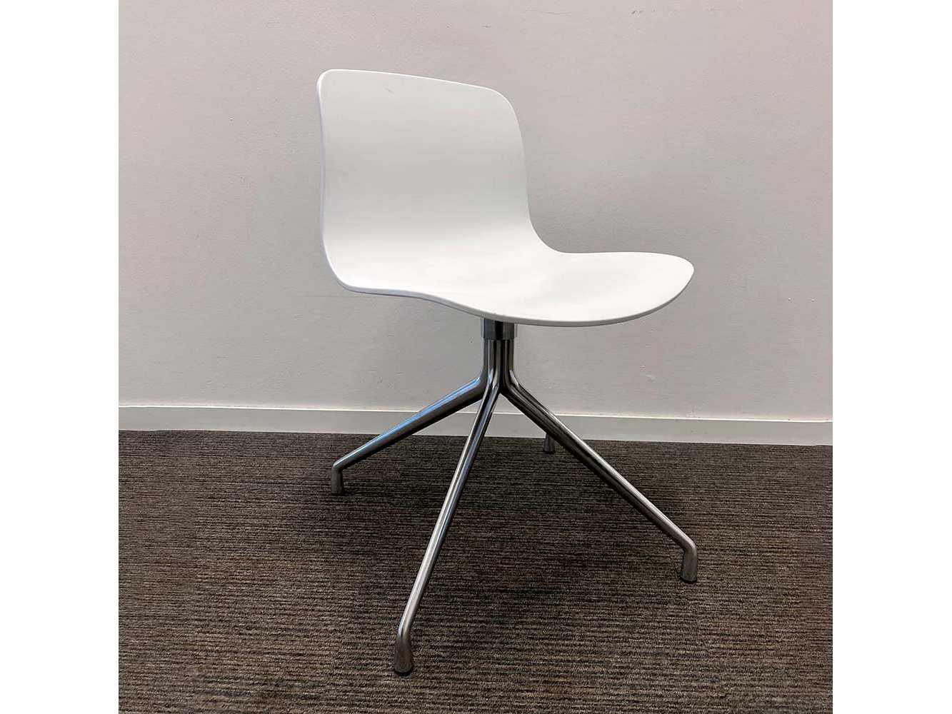 3xDesign draaistoel van HAY, model AAC 10 (About A Chair). De stoel heeft een ergonomisch gevormde zitschaal in wit kunststof en een stabiele, draaibare vierpoot in verchroomd metaal. Tijdloos Scandinavisch design, geschikt voor vergaderruimte, kantoor of eetruimte. Nee Merk: HAY Type: AAC10 Model: draaipoot Kleur: wit Materiaal: kunststof/metaal Zithoogte: 46cm Hoogte: 78cm Breedte: 52cm Diepte: 50cm