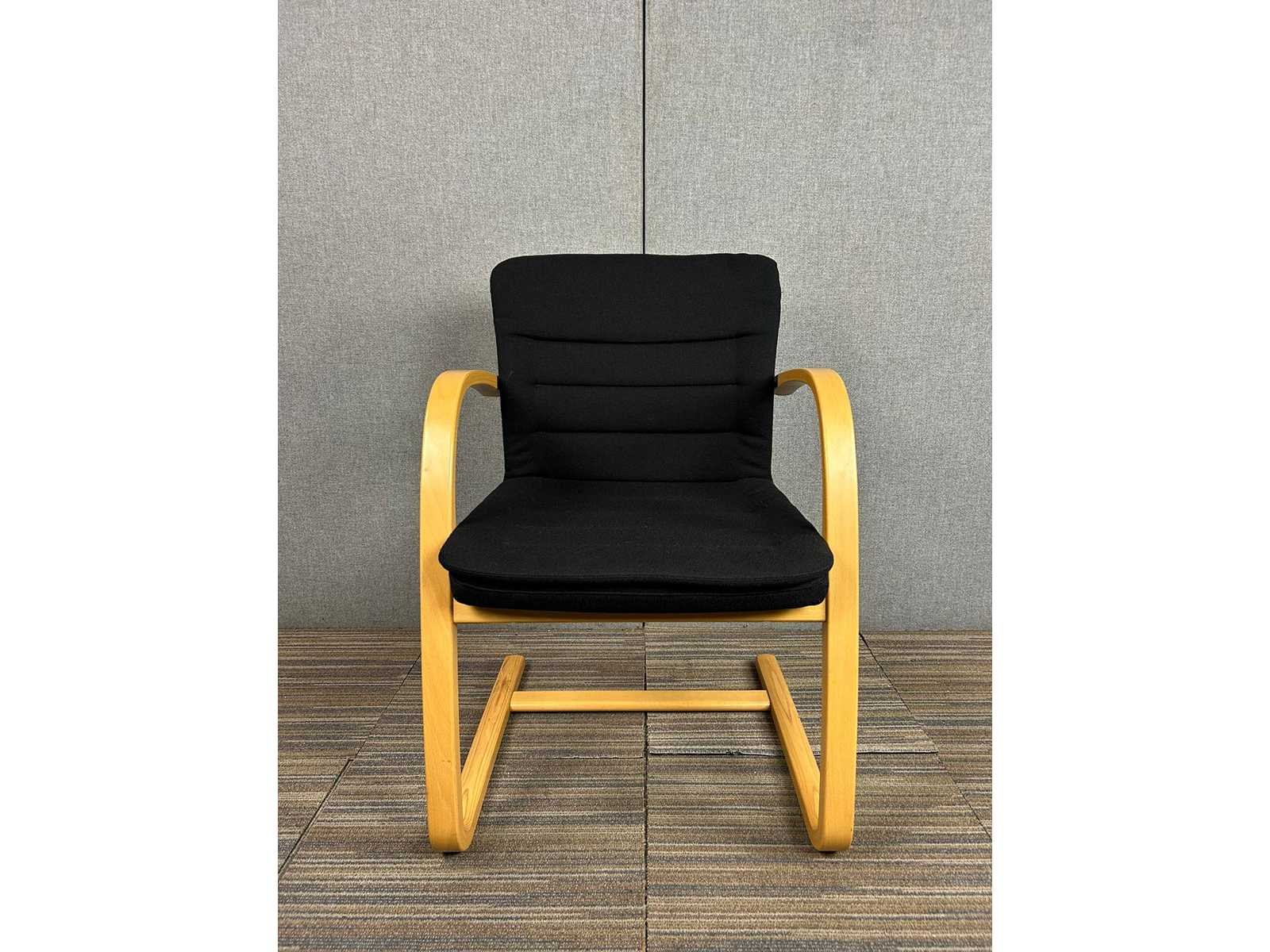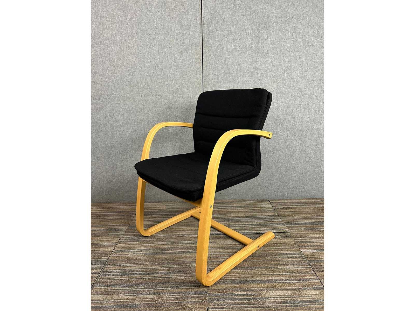 Kinnarps vergaderstoelen, hout slede onderstel , zwart stoffen zitting en rug, met lichte gebruiksporen Nee Merk: KINNARPS