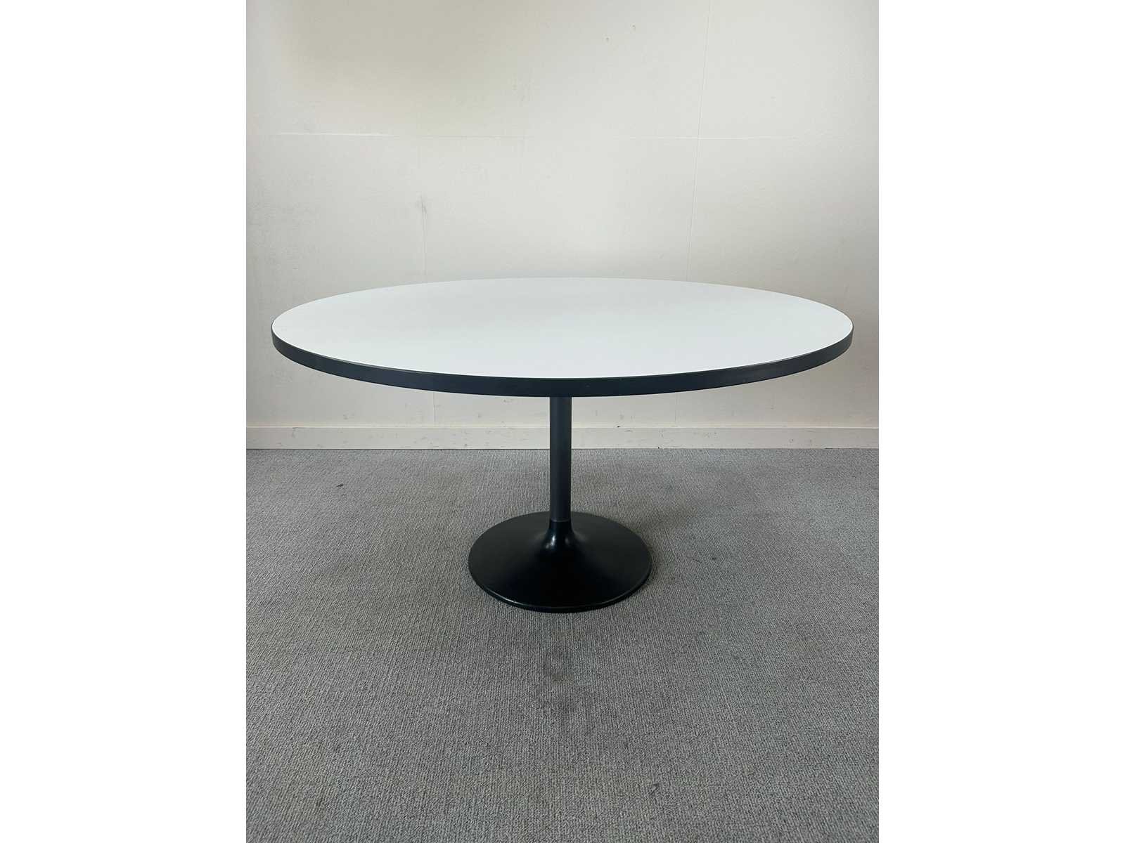 Dietiker Switzerland ronde tafel met een licht grijs blad en een elegant, stabiel metalen onderstel. Het ontwerp combineert Zwitserse kwaliteit met een moderne uitstraling, ideaal voor vergaderruimtes, kantines of creatieve werkplekken. Nee Merk: DIETIKER SWITZERland Model: rond Kleur: licht grijs Lengte: 135cm Breedte: 135cm