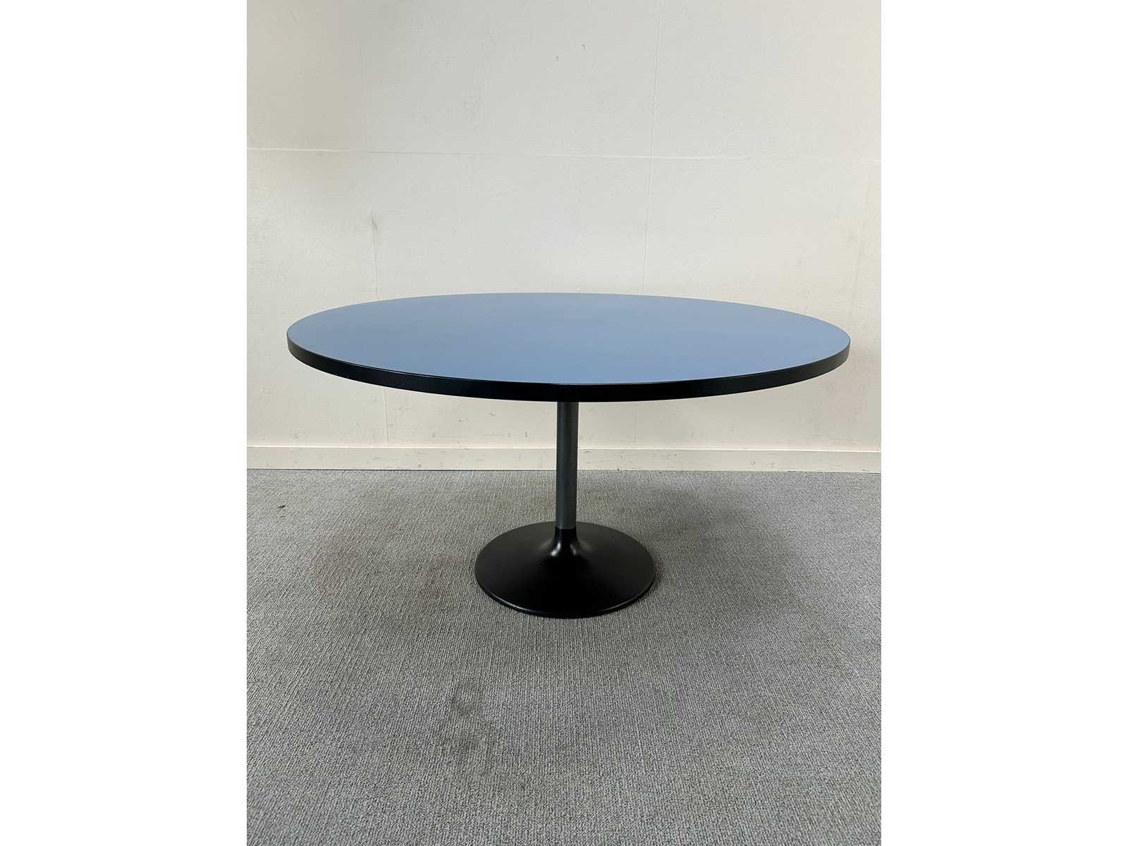 Dietiker Switzerland ronde tafel met een blauw blad en een elegant, stabiel metalen onderstel. Het ontwerp combineert Zwitserse kwaliteit met een moderne uitstraling, ideaal voor vergaderruimtes, kantines of creatieve werkplekken. Nee Merk: DIETIKER SWITZERland Model: rond Kleur: blauw Lengte: 135cm Breedte: 135cm