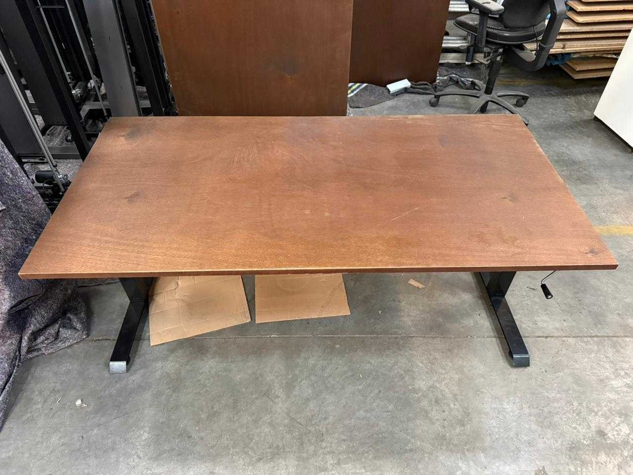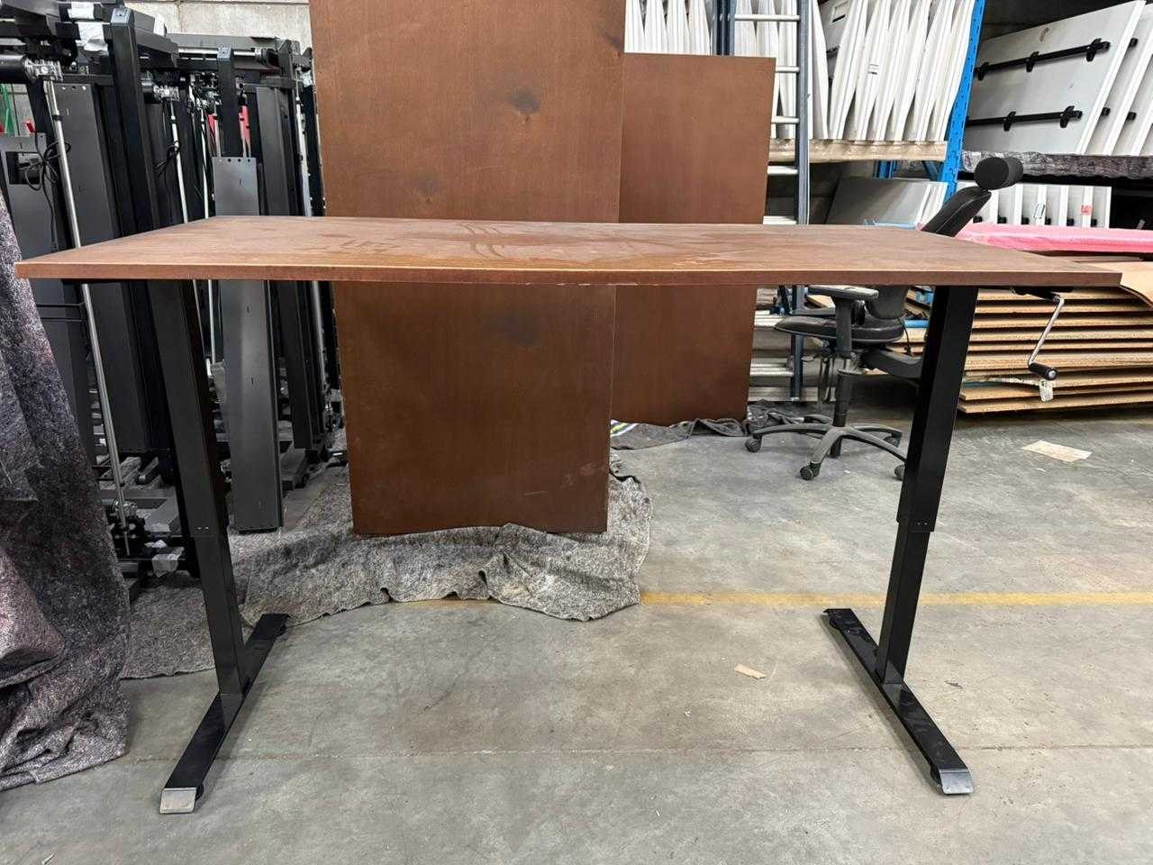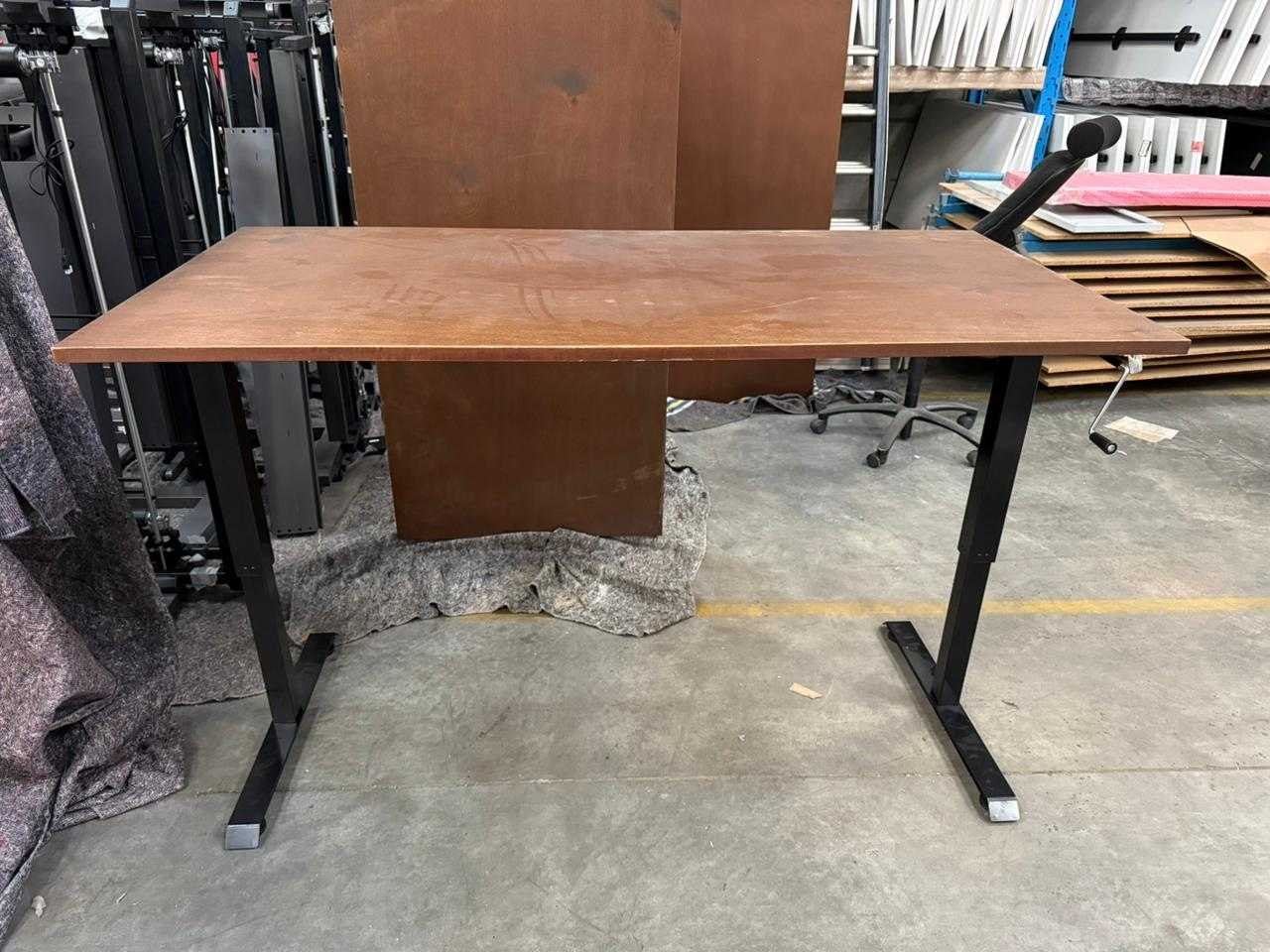 Zit/sta bureau met manuele hoogteverstelling via slinger. Voorzien van een rechthoekig werkblad in houtkleur en een stabiel T-poot onderstel in zwart gelakt staal. Praktisch en duurzaam bureau, geschikt voor kantoor, atelier of thuiswerkplek. Nee Slingerbureau: true Kleur: bruin/zwart Gewicht: 30kg Lengte: 160cm Breedte: 80cm Hoogte: 64-110cm Materiaal: hout/metaal