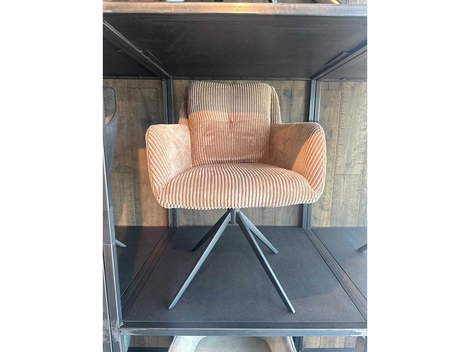 Verzwaard en gecoat onderstel, 1x showroommodel 4x ongebruikt Let op: Bij afhaling van de goederen dient u deze zorgvuldig te controleren. Na afhaling is retour of na-service niet mogelijk. Indien u niet aanwezig bent op de afgesproken afhaaldag, worden extra kosten in rekening gebracht. No Model: JD8760-17 Product type: Design eetkamerstoelen Kleur: brown Materiaal: geribt
