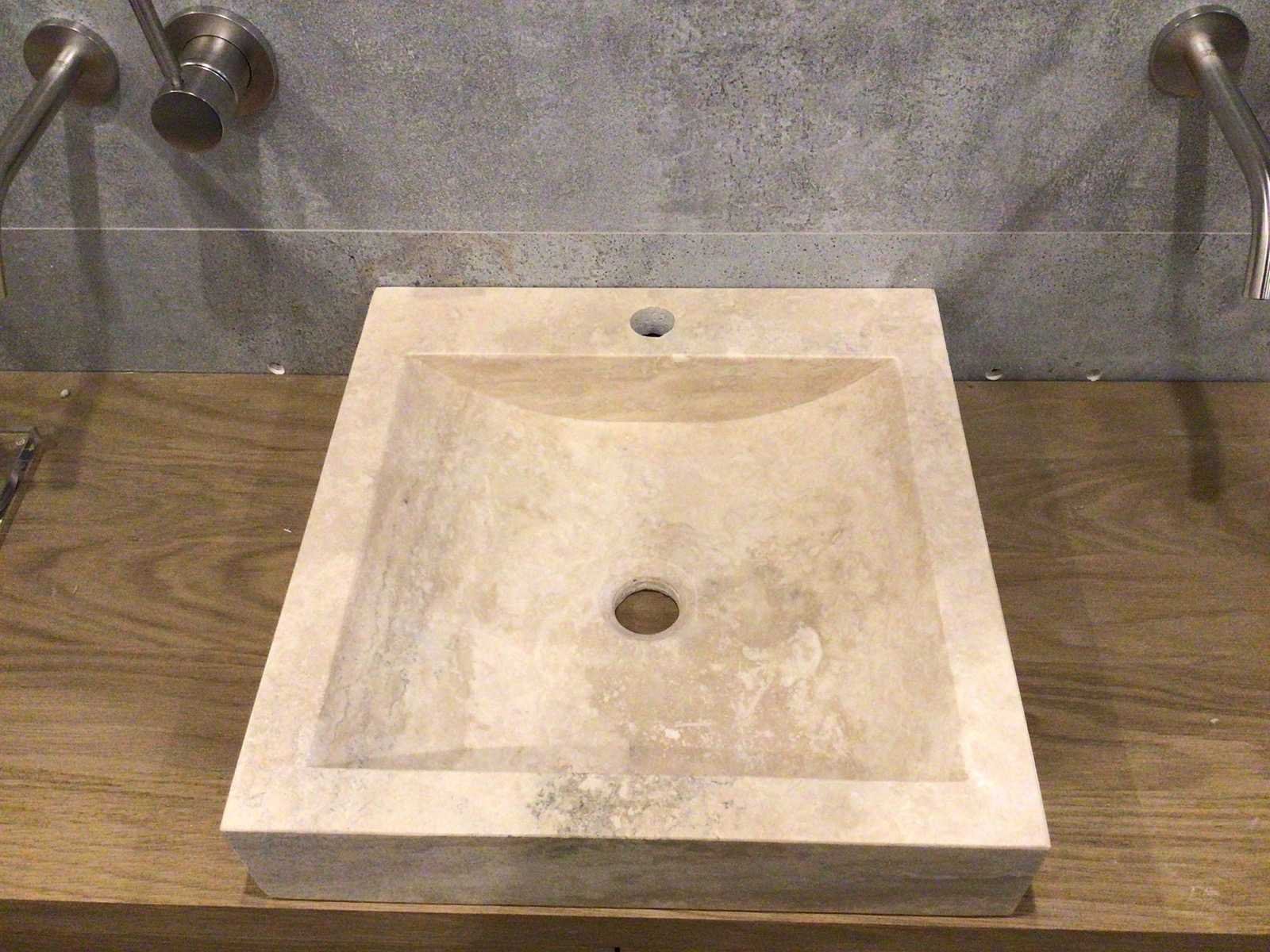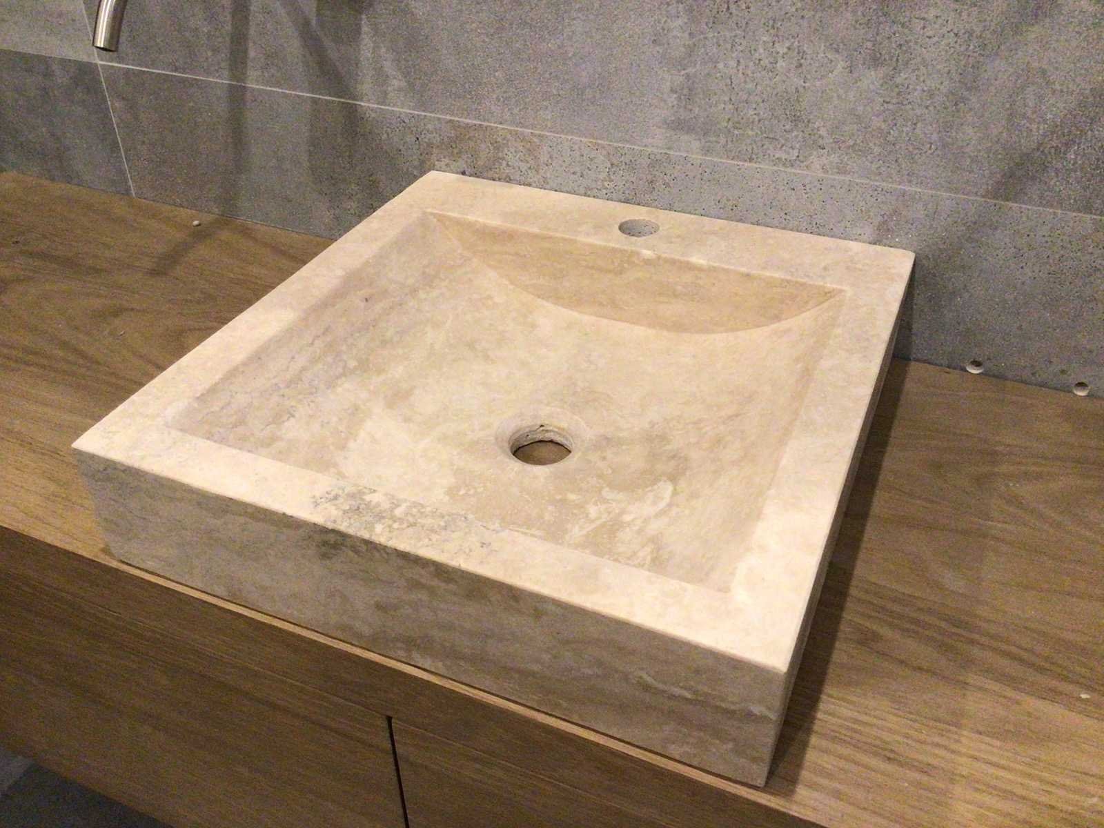 Natuursteen light travertin wastafel 45x46 cm
